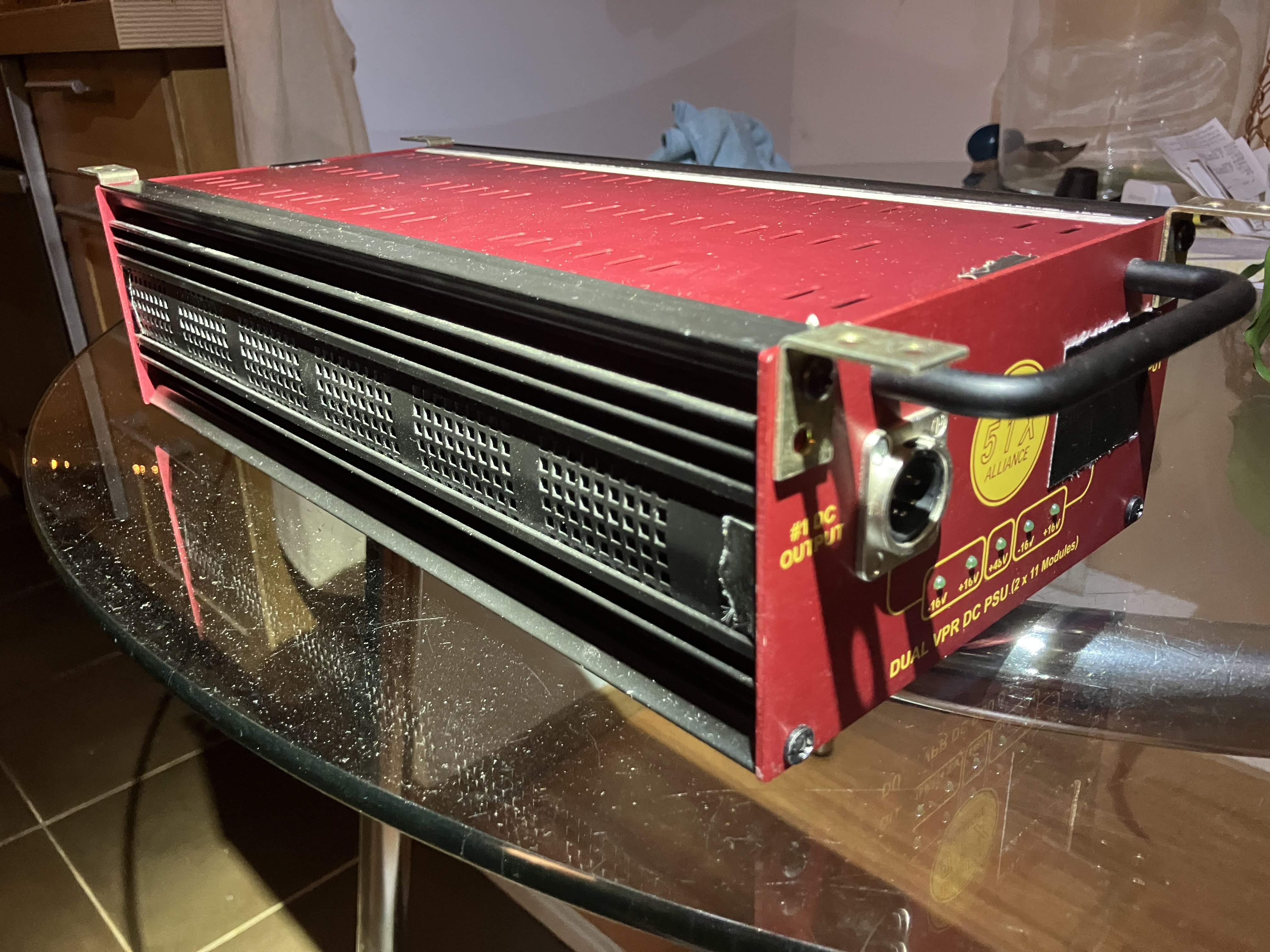 Bonjour ! Je vends ce rack format 500 API (compatible avec les modules standard API 500 16V), et son alim. Je les ai montés méticuleusement depuis les pièces détachées il y a environ 5 ans. C'est la version 51x Alliance de Silent Arts. On trouve plus d'infos sur Gearspace, le site CAPI gear, ou encore GroupDIY. Je le vends par ce que je cherche quelque-chose de plus mobile, idéalement une lunchbox originale d'API avec 6 slots, je suis ouvert aux propositions d'échange.⚡ Alimentation :