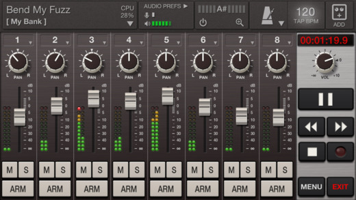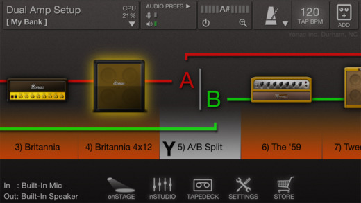 ToneStack GO est compatible avec Audiobus, l’audio inter-app, le copier/coller de l’audio, il inclut du MIDI Learn et vous pourrez échanger des presets par e-mail, WiFi et iTunes.