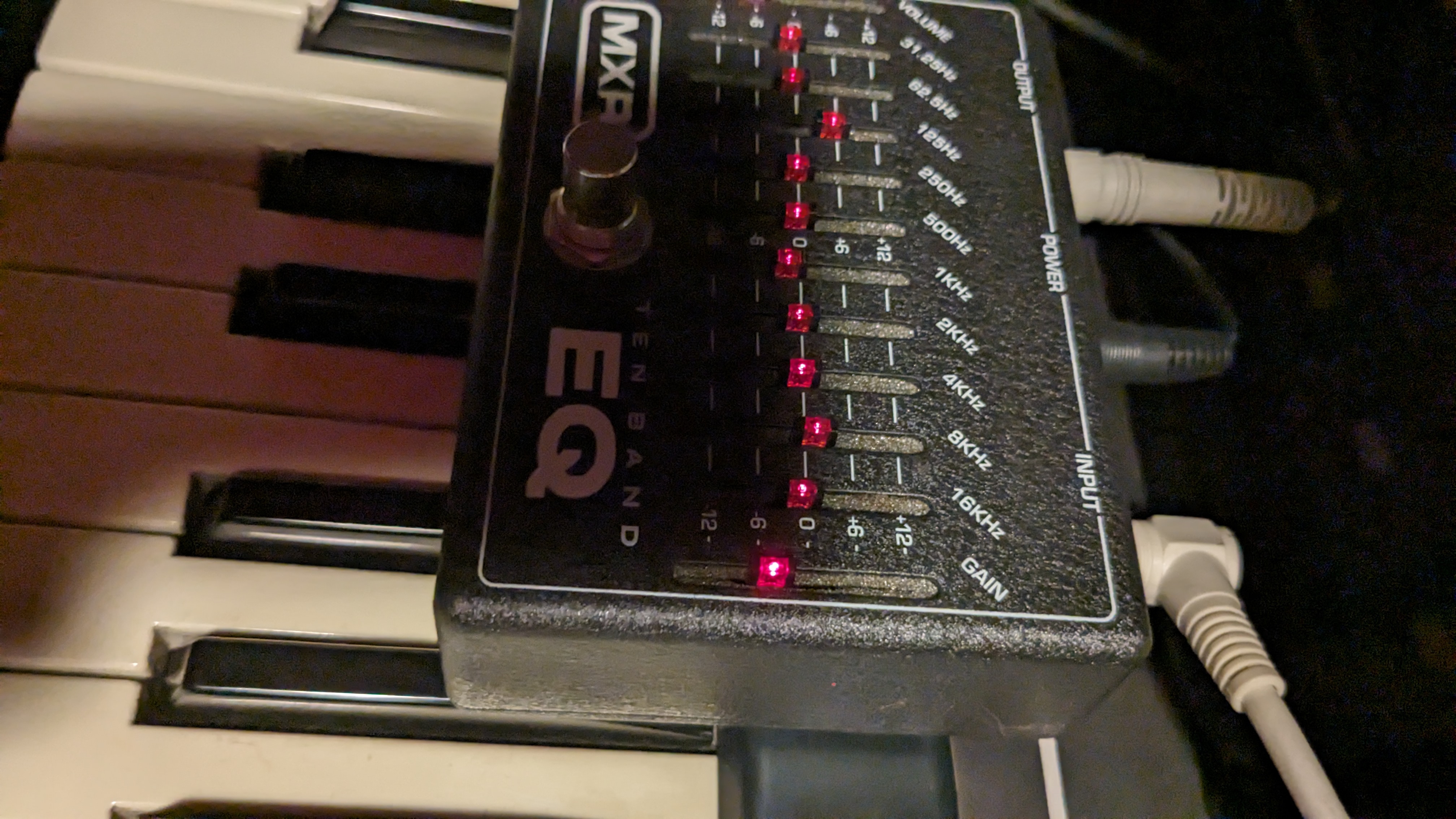 Je vends cette pédale d'EQ MXR 10 bandes. C'est l'ancienne version (années 2000) avec une sortie mono, de couleur noire et avec les LED rouges. En bon état fonctionnel et esthétique. A venir chercher en région parisienne.