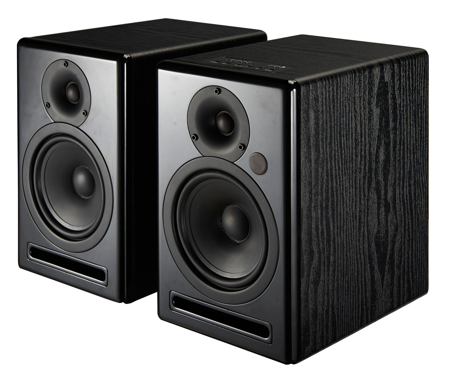 Les enceintes sont vendues par paires, l’une des deux inclut les fonctions d’appairage Bluetooth, de sélection de l’entrée et du contrôle de volume
