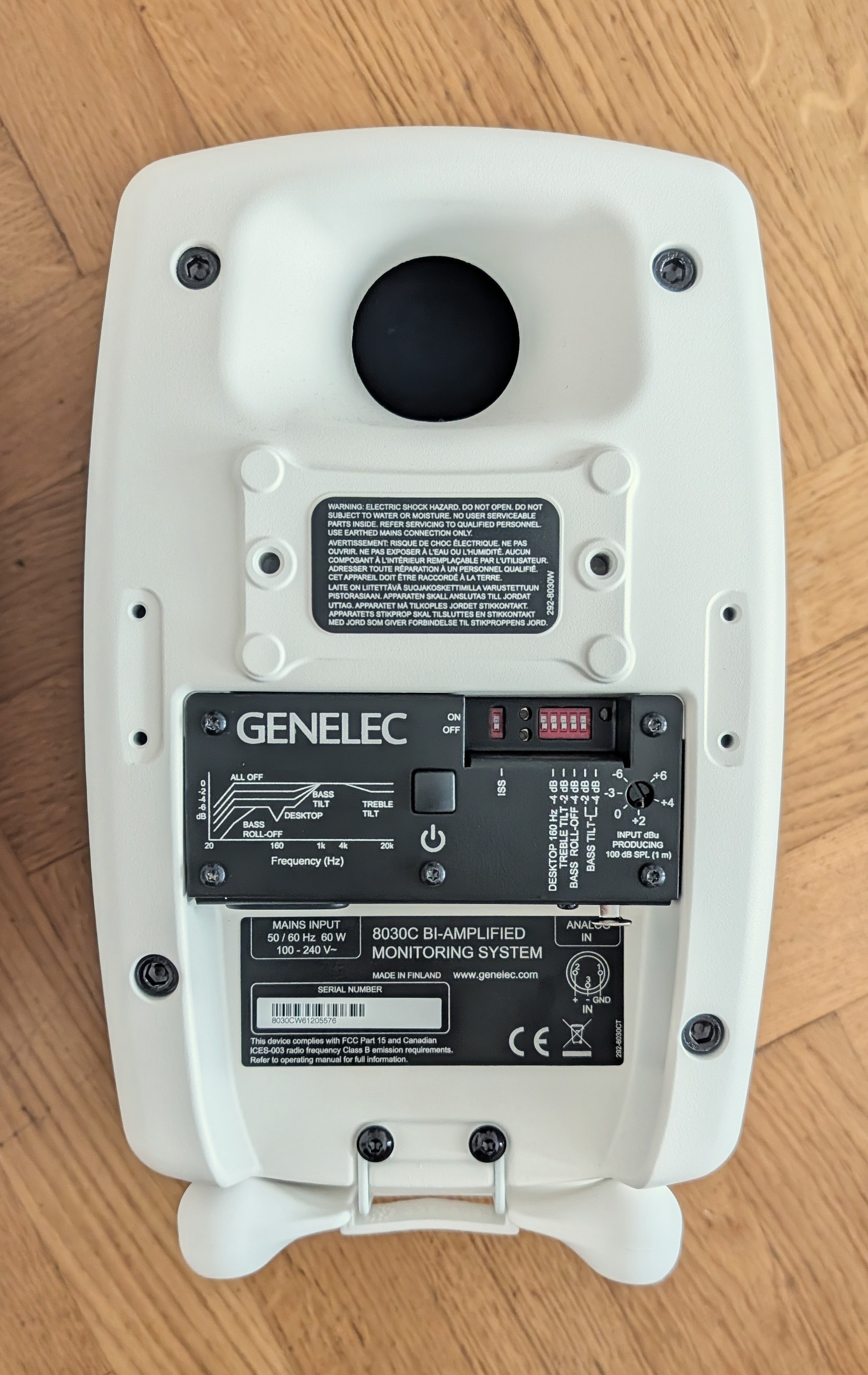 Fabricant: GenelecAspect: Sélecteur 2 positionsDésignation de couleur: WhiteDistance d'écoute: Near fieldBluetooth: NonBlindé magnétiquement: YesAdaptation à l'acoustique: OuiDSP: OuiPaire: NoTaille boomer (pouces): 5Taille tweeter (pouces): 0,75Classe d'ampli: Classe DPlage de fréquences: 54 - 20000HzEntrées analogiques: 3-Pole XLRNiveau de pression acoustique (SPL max en dB): 107Largeur (mm): 189Profondeur (mm): 178Hauteur (mm): 299Poids (kg): 5,6