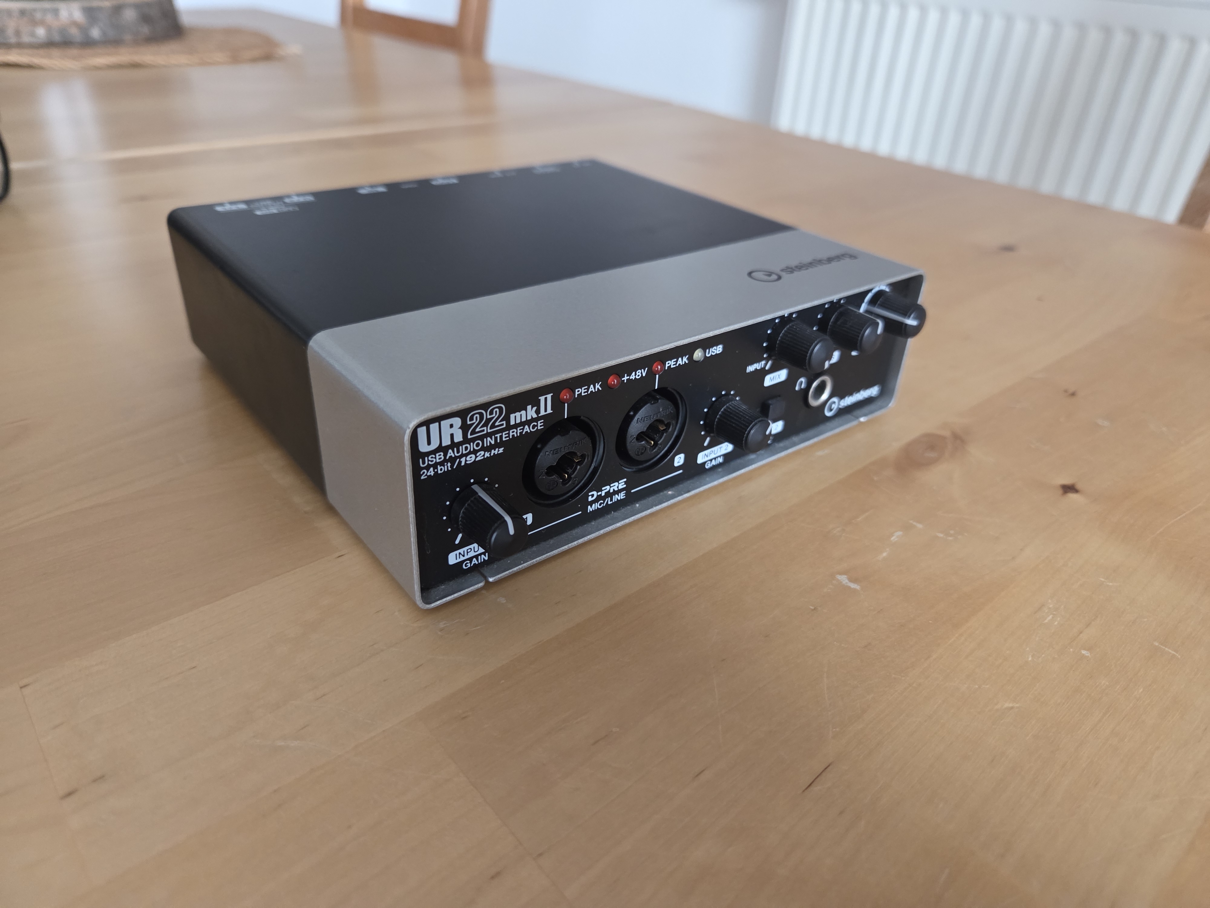 Interface audio : Steinberg UR22 mkII (2 entrées / 2 sorties, 24-bit/192kHz, ultra robuste).