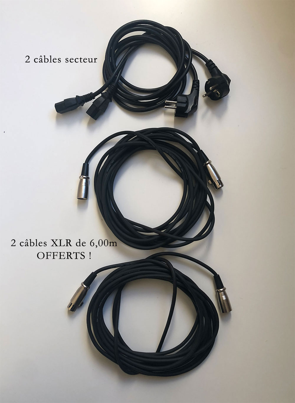 - 2 CABLES XLR Mâle-Femelle de 6,00M OFFERTS !