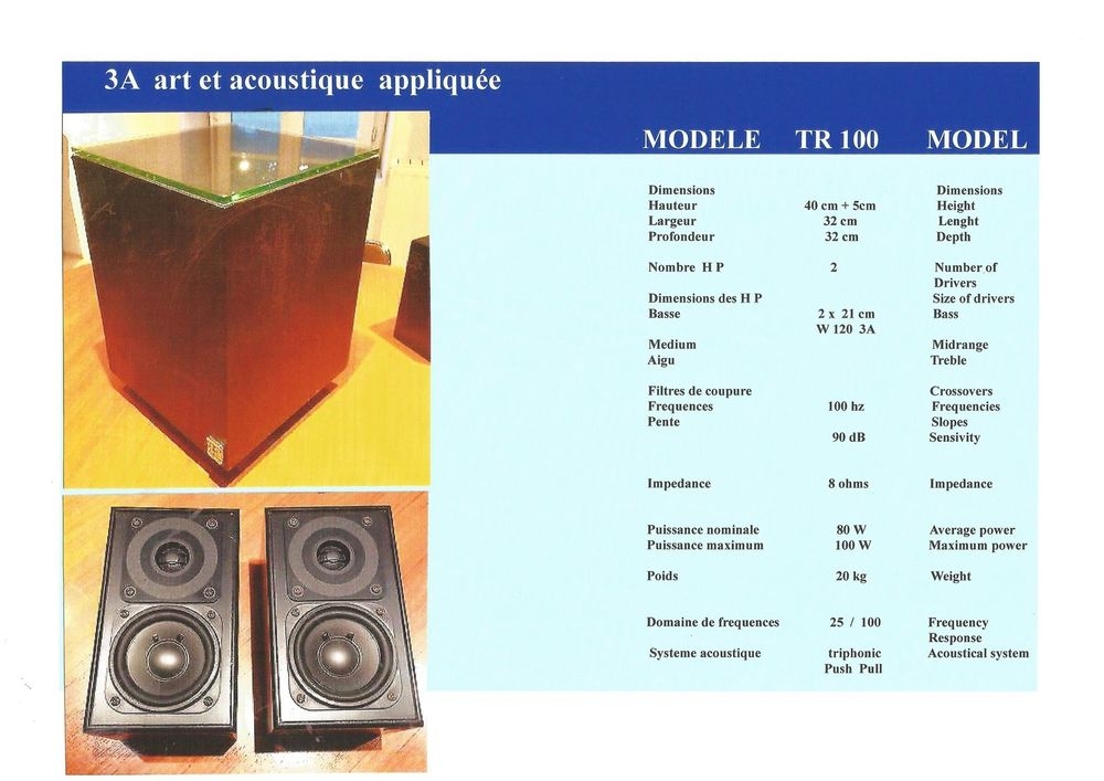 Enceintes/Baffles 3A Triphonic 100 (Rares - Collector : 1985/1990)