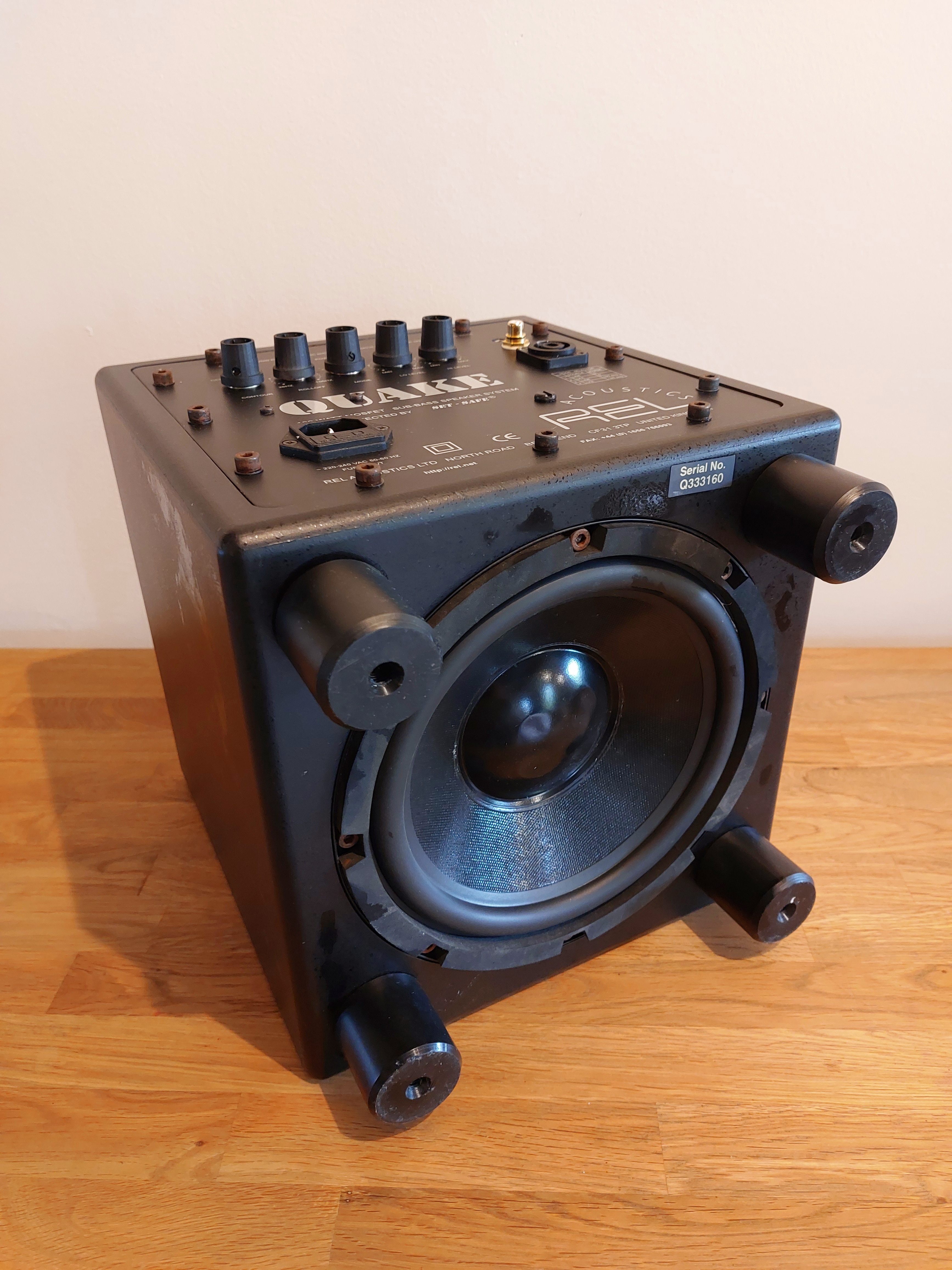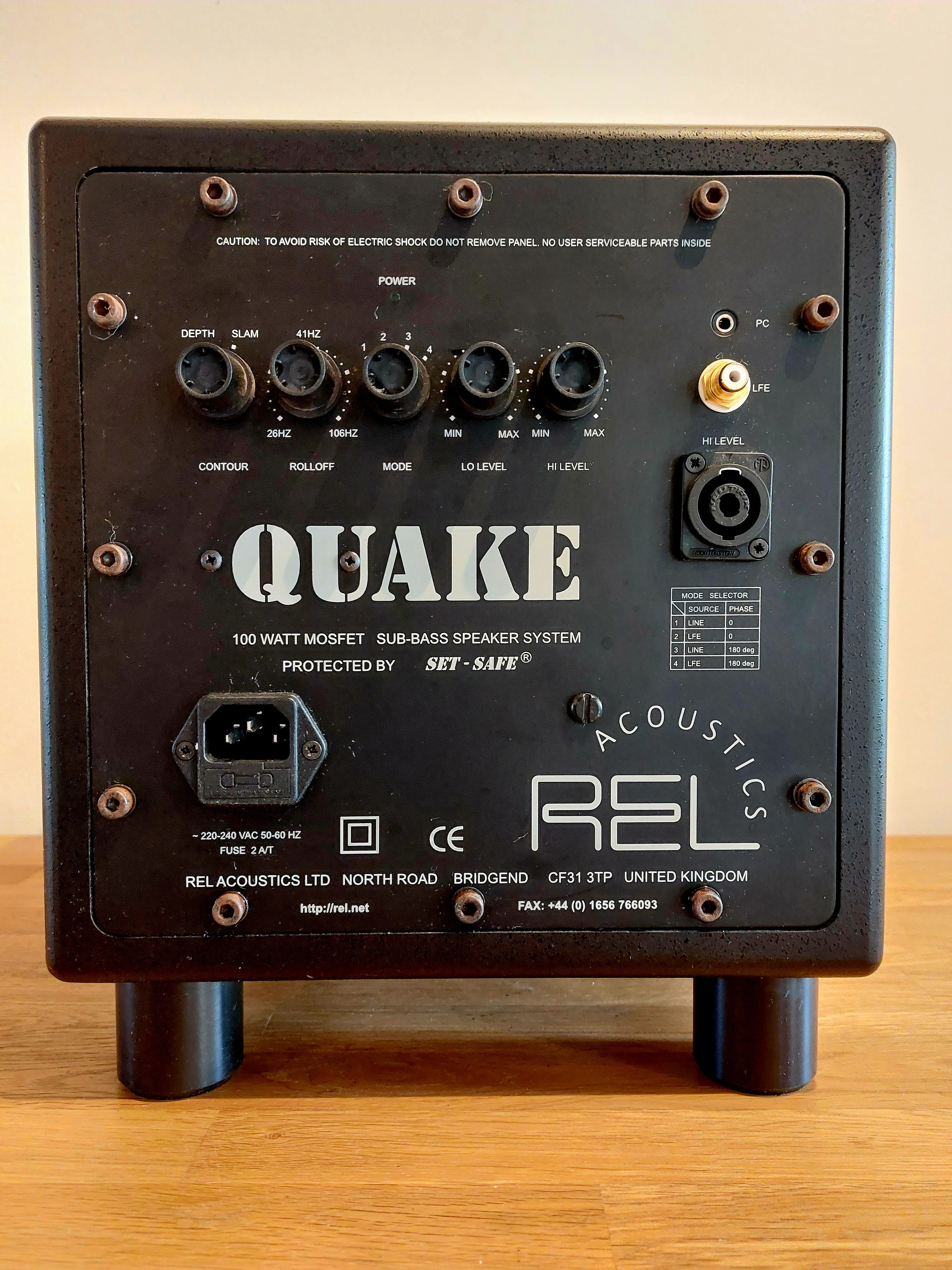 Caisson de basses REL Acoustics QUAKEAlimenté par un amplificateur à couplage direct MOSFET d'une puissance de sortie continue de 100 watts