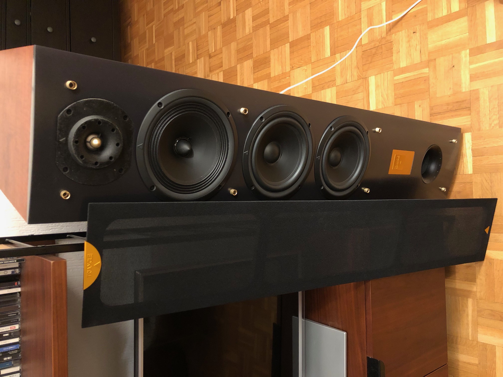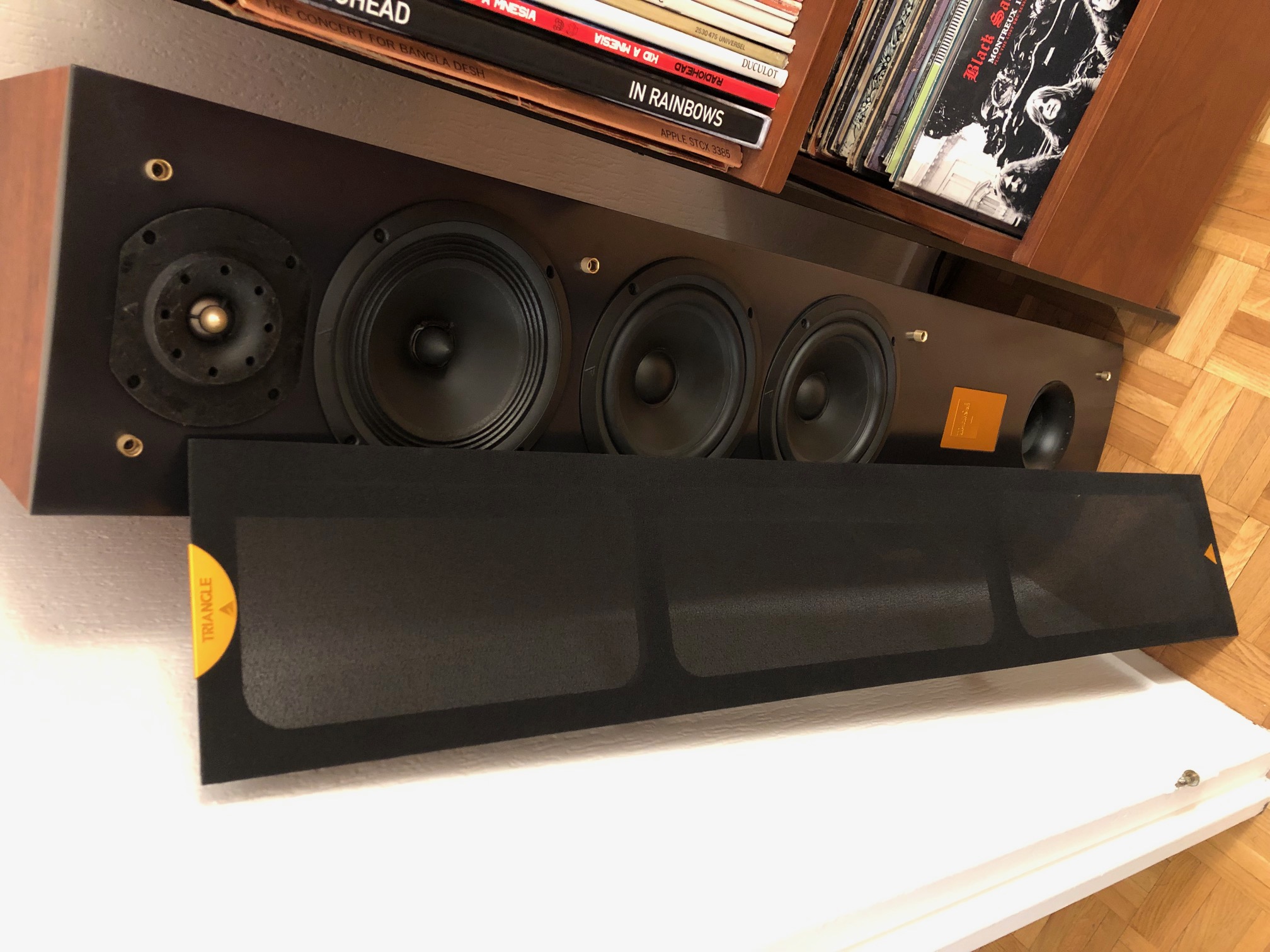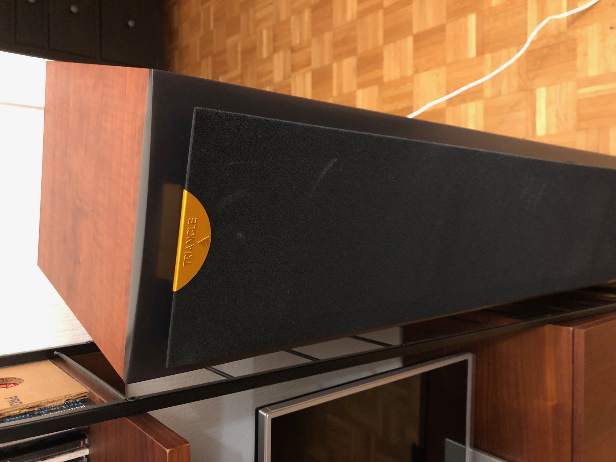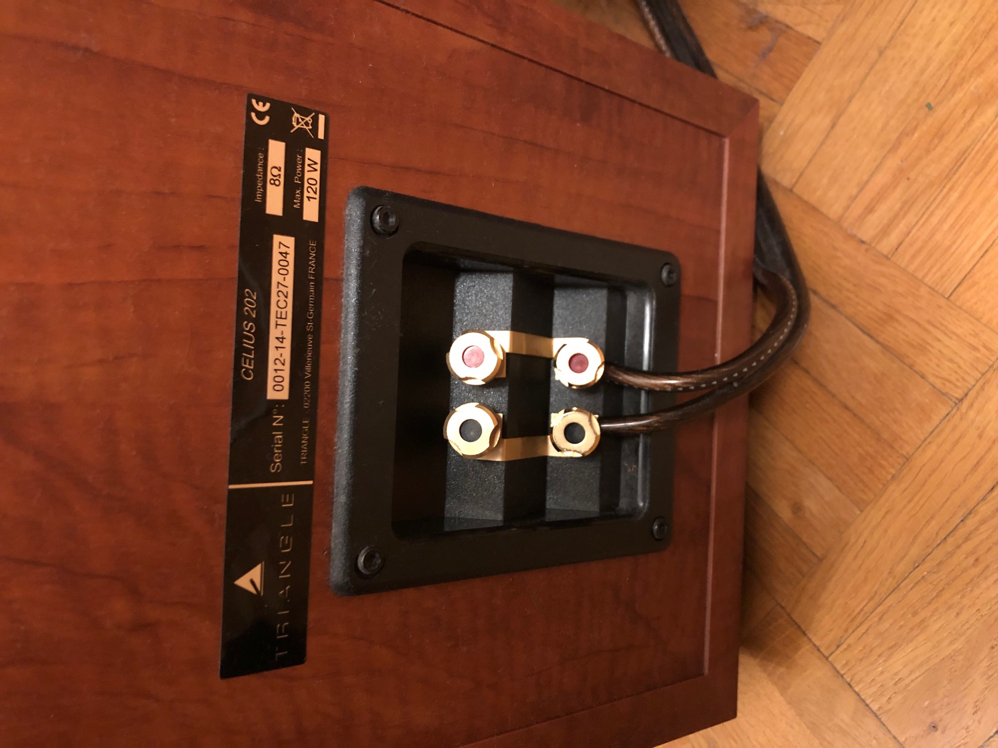 Enceintes colonnes Triangle Celius 202 couleur cerisier, achetées neuves en 2015, excellent état, utilisées et manipulées avec grand soin. Avec mode d'emploi et cartons/protections d'origine (22 kg pièce...). Les enceintes sont montées sur les pointes de découplage d'origine (dévissables), et j'avais ajouté des contre-pointes que je livre avec, pour ne pas rayer les parquets... Son incroyable (même si un peu l'étroit dans leur configuration actuelle sur les photos), je m'en sépare à regret !Pour cause d'arrivée d'un heureux événement et donc besoin de place :-), je vends mon installation hi-fi audiophile pour acheter plus compact (voir mes autres annonces pour l'ampli et le lecteur CD ; je ne garde que la platine vinyle).