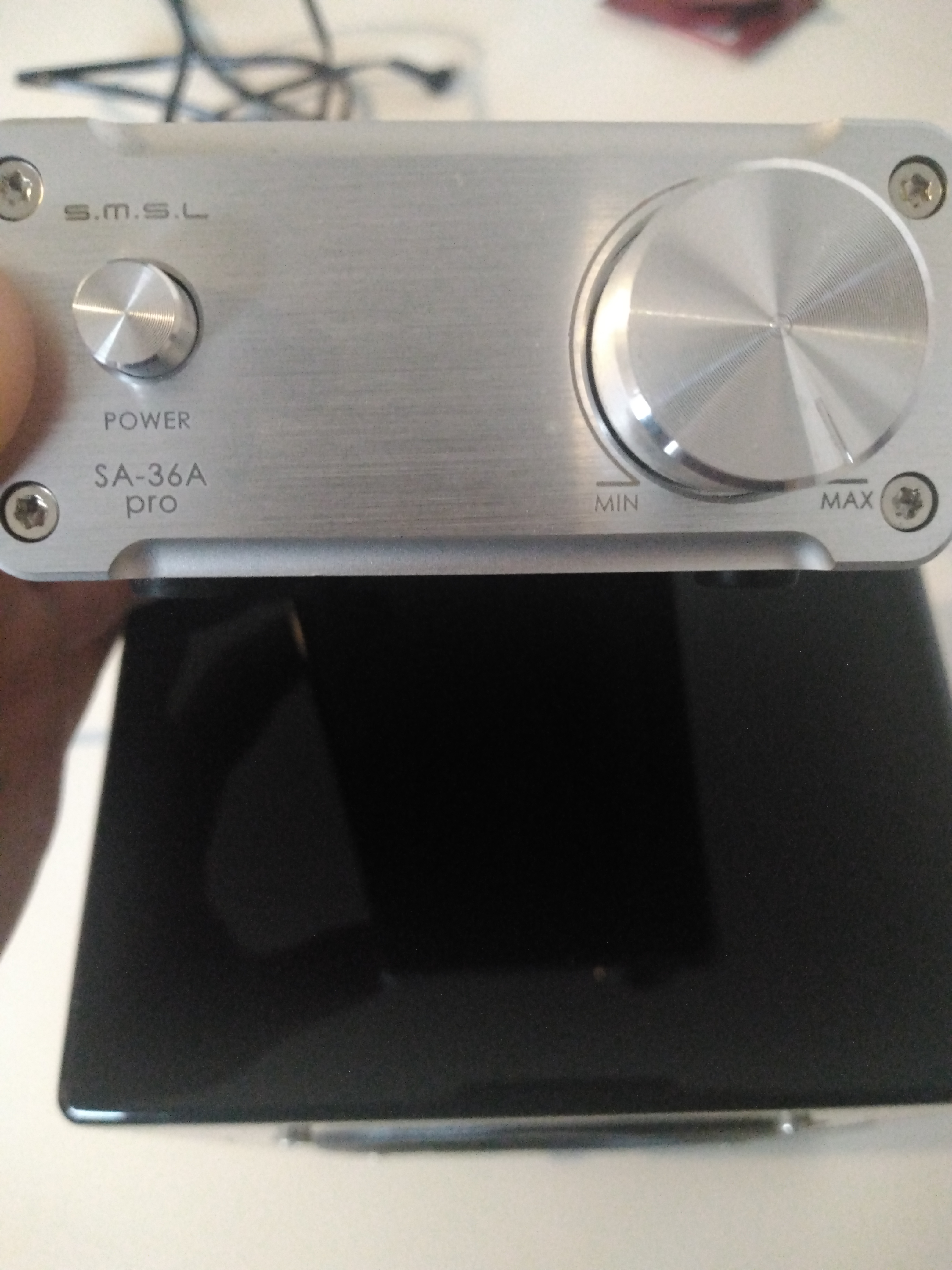 État nickel, je peux également fournir un ampli associé (et câblé !) SMSL SA-36A, en très bon état également, avec son alimentation et un câble RCA vers jack :