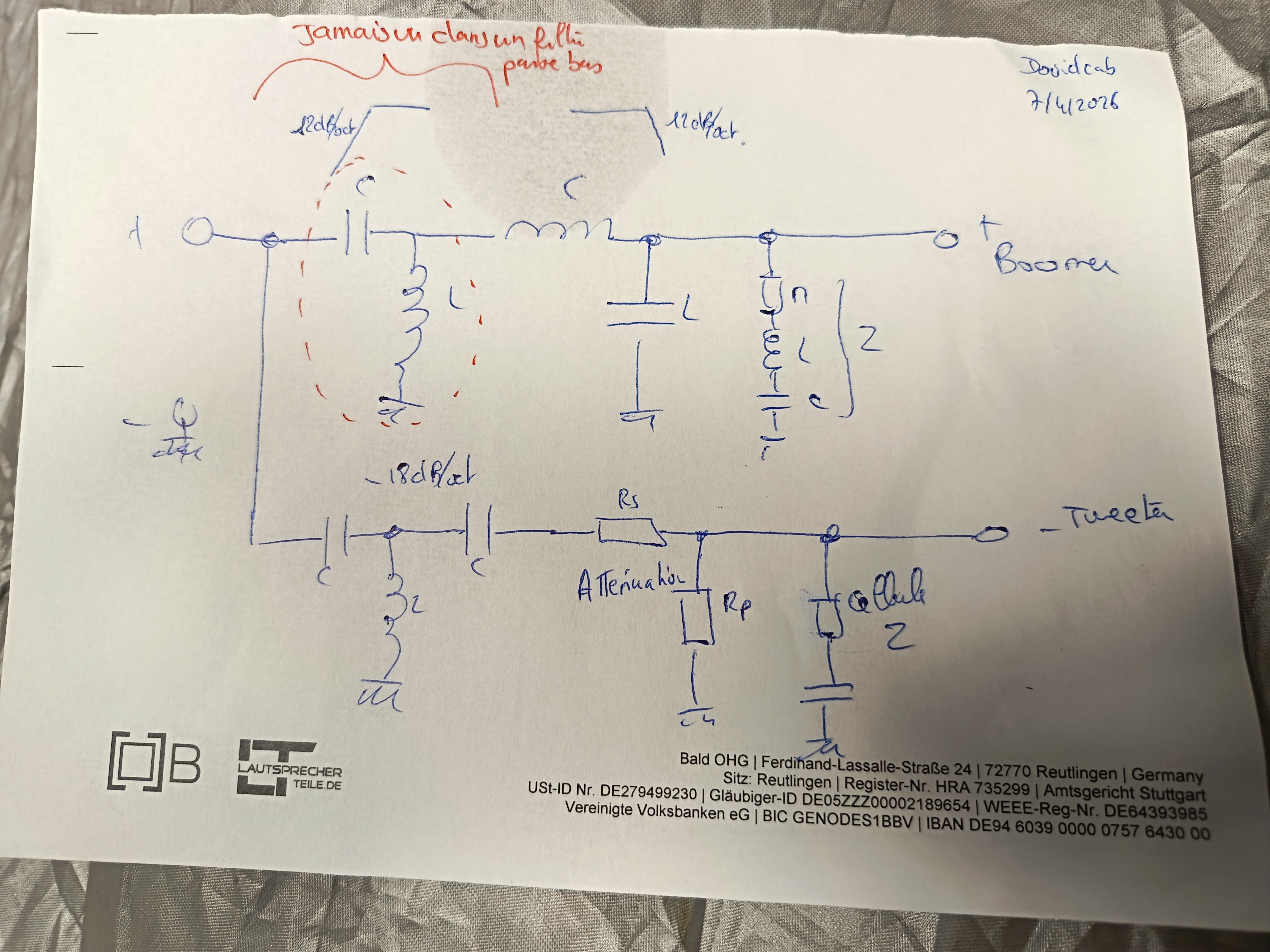 - Imp : 8 Ohms, bi-amplifiable