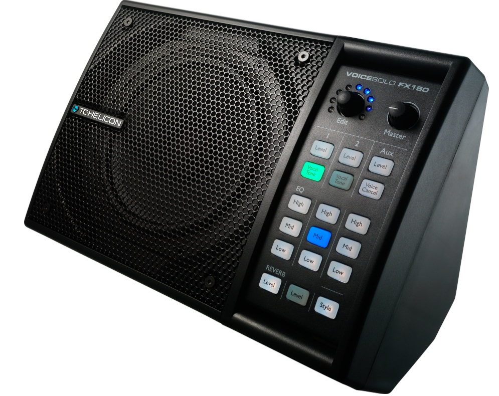 Le VoiceSolo FX150 est doté d’un haut-parleur 2 voies coaxial de 6.5” conçu spécialement par Tannoy et d’un ampli de 150W. Une console de mixage trois canaux est également intégrée, avec alimentation fantôme 48V pour les micros à condensateur et l’inclusion d’une technologie DSP Vocal Tone propriétaire sur chaque entrée micro qui gère la compression, l’égalisation, le de-essing et le gate sur les voix. 9 types d’effets provenant du VoieLive 3 sont aussi au menu (doubleur, harmonie, écho, HardTune, Flanger, Choeurs ou 9 types de réverbe…). Notez que la réverbe pourra être activée à distance si vous utilisez les micros TC Helicon MP75 ou Sennheiser e835 FX.