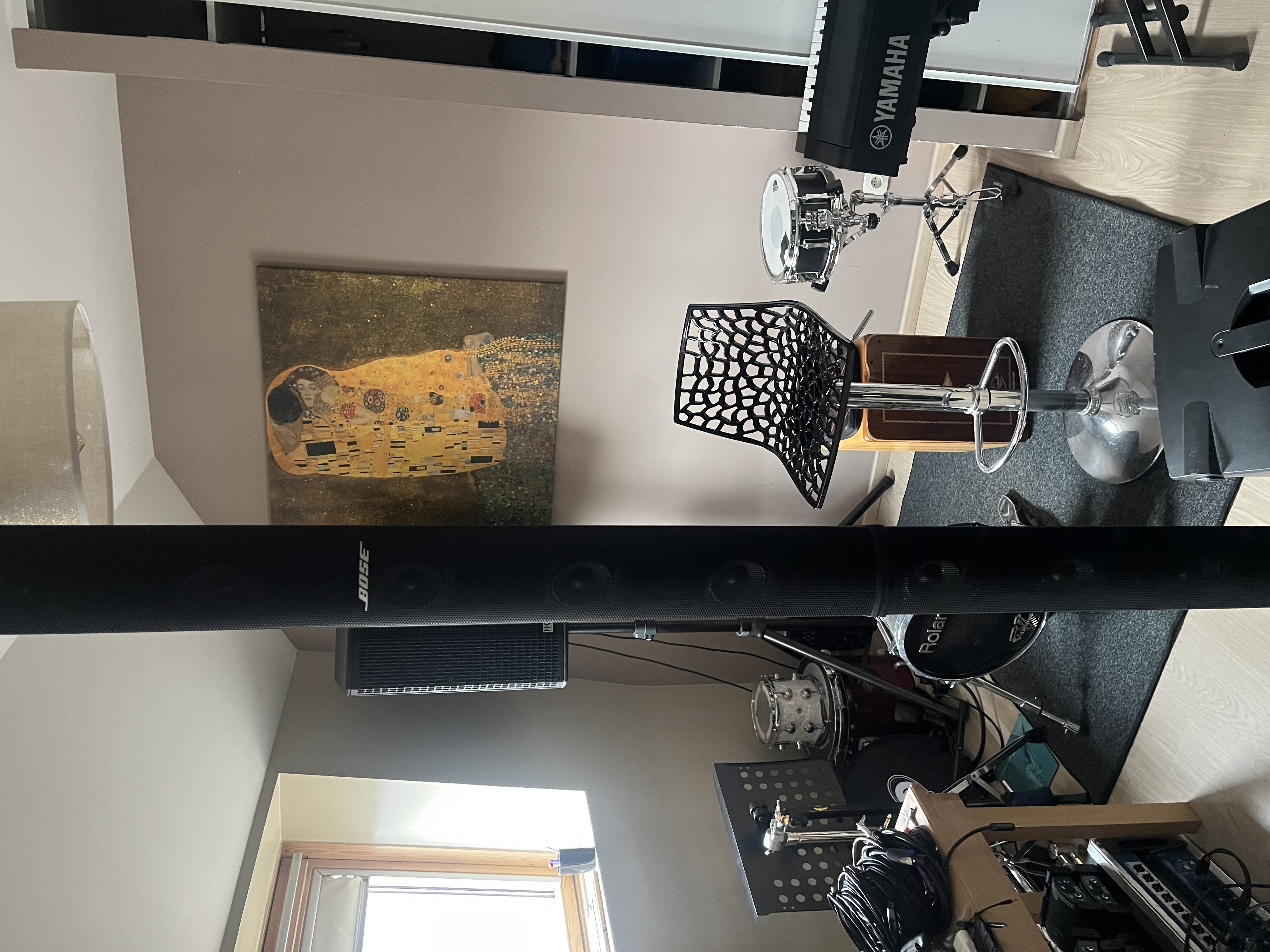 Nous sommes un duo guitare électrique et deux voix sur séquences. Le Bose modèle II est placé à ma gauche, en avant de notre régie. Attention à ne pas trop avancer les pieds de micros chant : la colonne fait accrocher nos Sennheiser E 935.