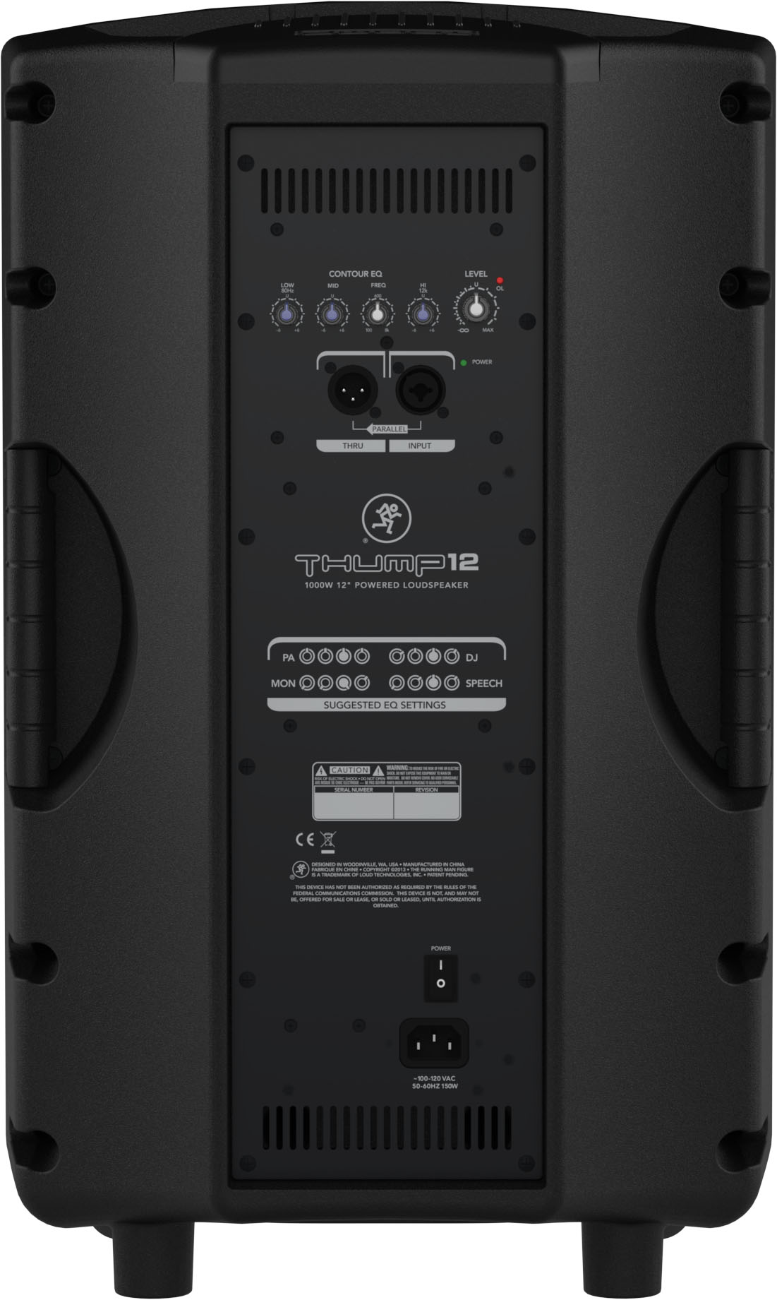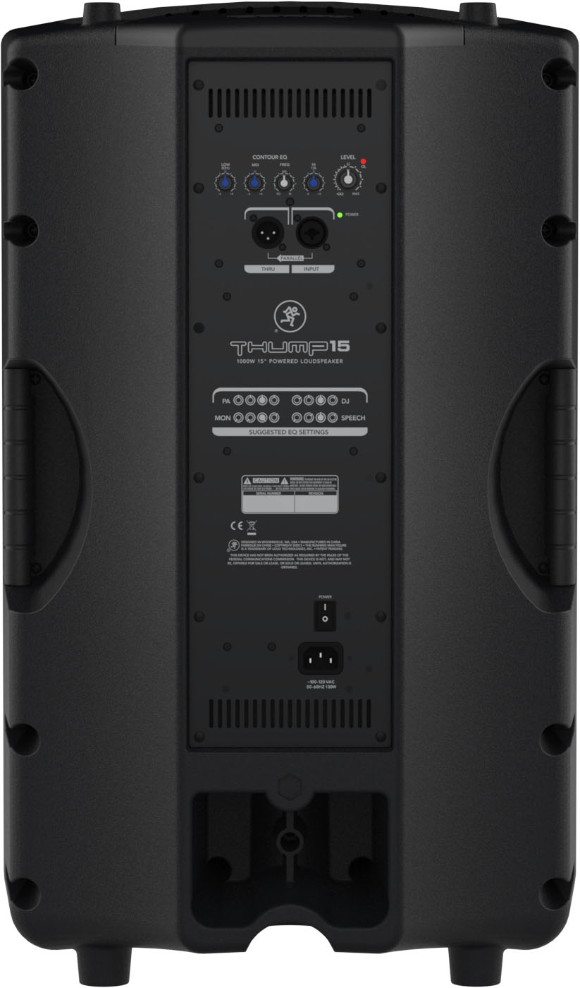 Les Thump12 et Thump15 hébergent donc dans leur baffle en polypropylène un woofer de 12” et 15” respectivement, à cône en papier, et un tweeter à dôme en titane de 1.4”. Vous trouverez également sur chaque modèle un égaliseur trois bandes (boost/cut de 6dB) de type shelf pour les aigus et les graves, avec balayage des médiums entre 100Hz et 8kHz, une entrée micro/ligne sur combo XLR/Jack 6.35mm et une sortie/Thru sur XLR pour chaîner plusieurs enceintes Thump.