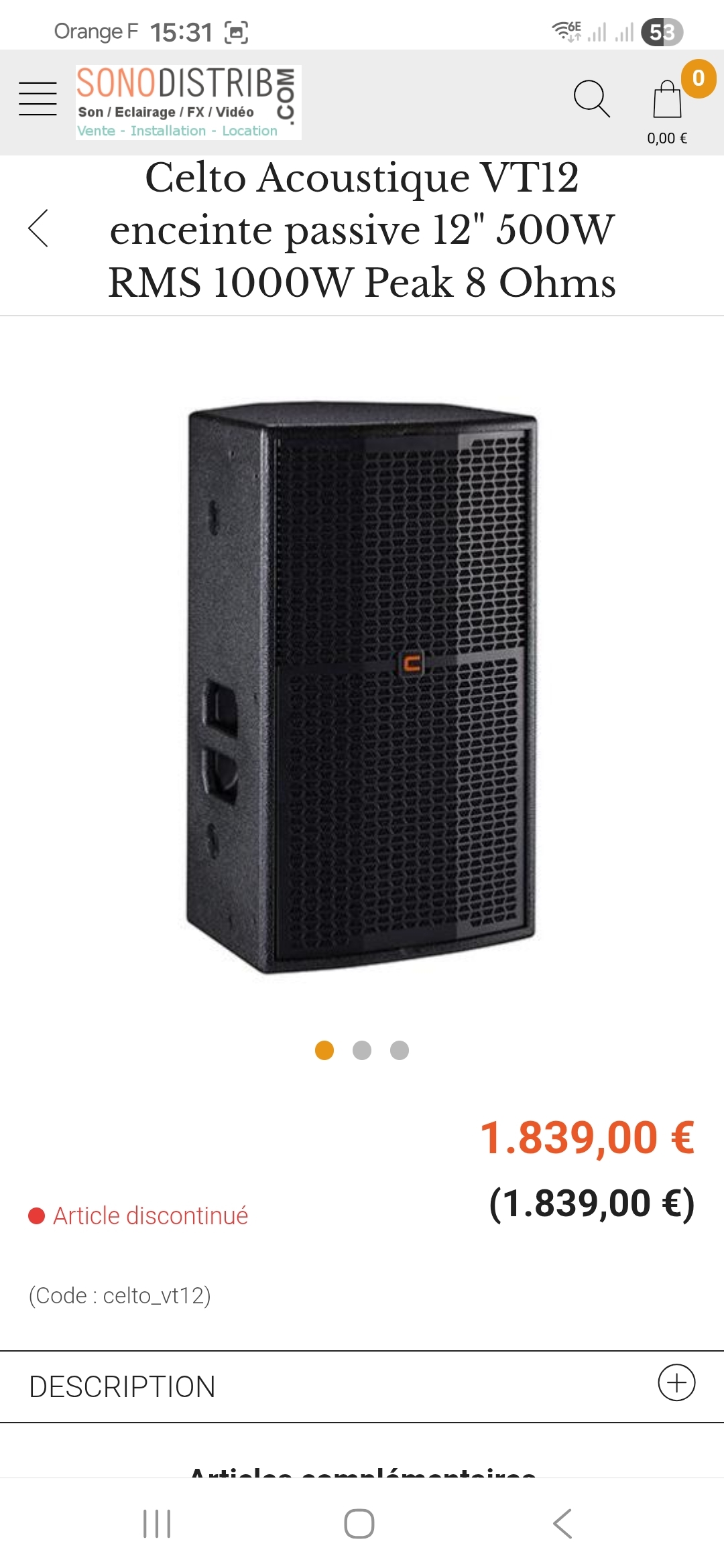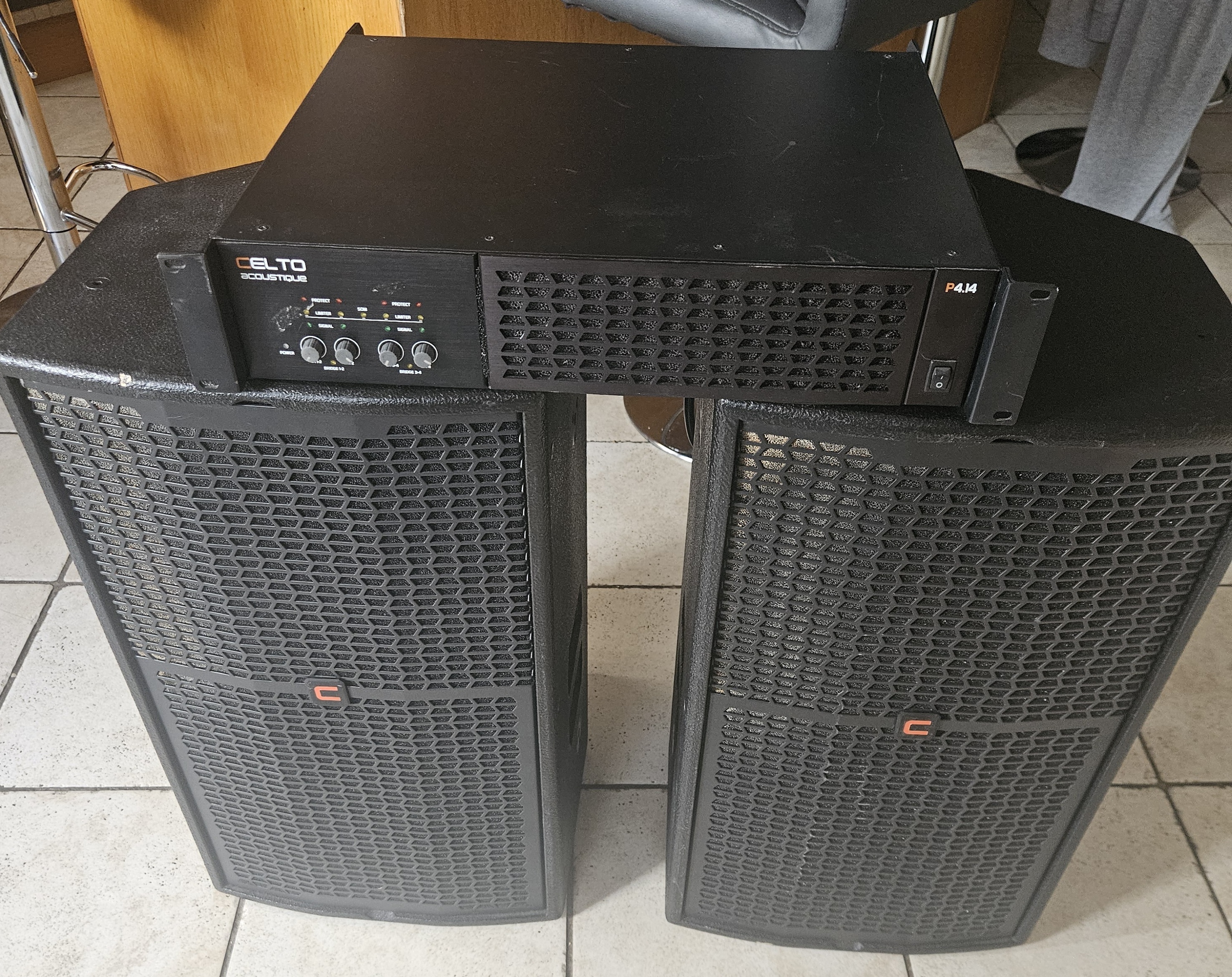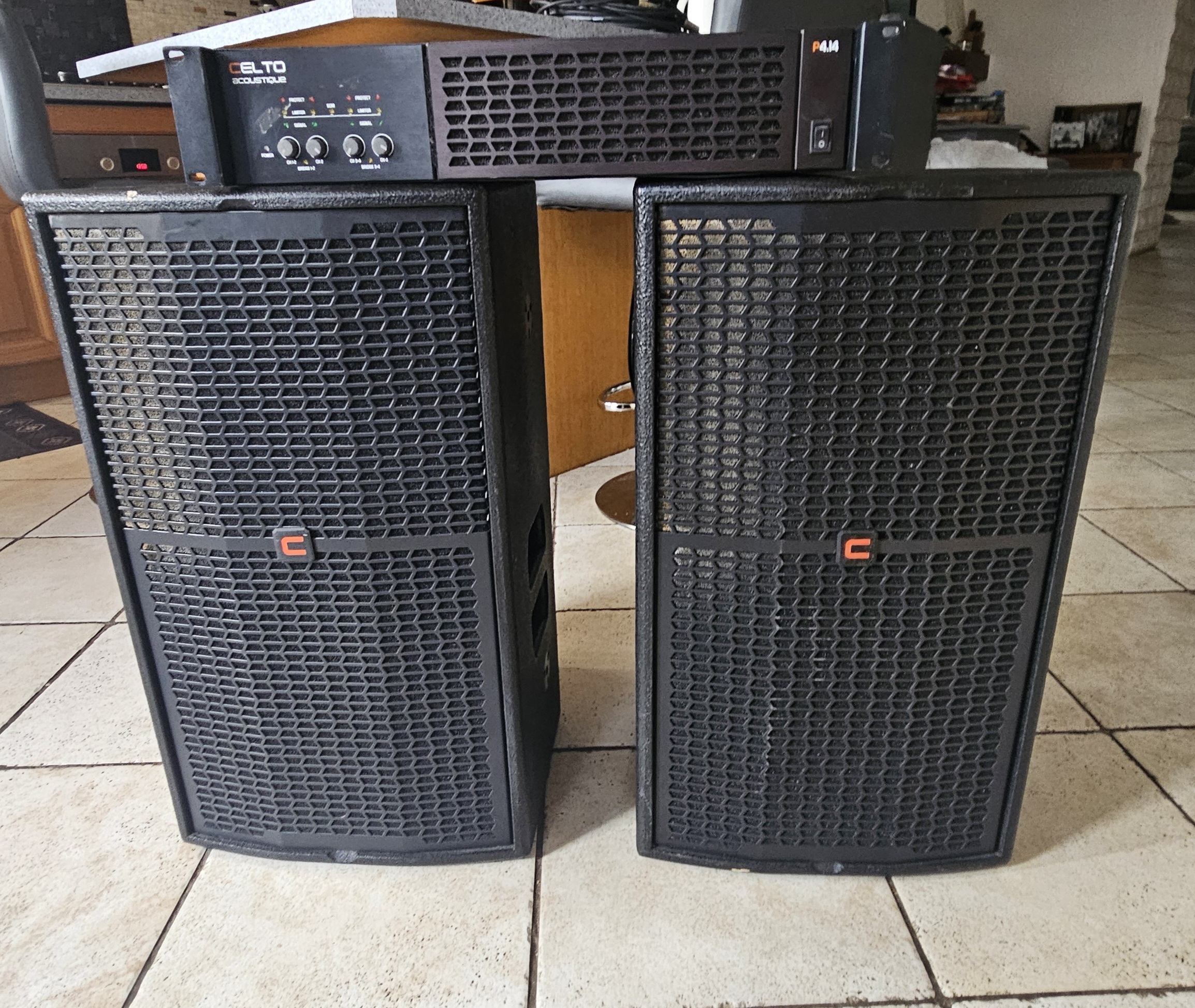 Pack sono Celto Acoustique 2 enceintes VT12 + ampli P4.14 état quasi neufDescription : Système de sonorisation complet Celto Acoustique, idéal pour DJ, soirées ou événements.