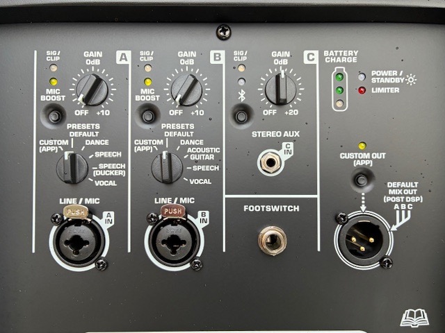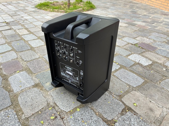 Le châssis combine le meilleur des deux mondes, à la fois léger et solide, et on ne peut que saluer le choix du polypropylène dans ce cas de figure. L’enceinte est vraiment très facile à transporter, avec une poignée centrale sur la partie supérieure qui s’avère très ergonomique et permet une répartition équilibrée du poids une fois la prise en main effectuée. Le panneau de commandes arrière est aussi bien pensé, chaque potentiomètre est cranté et il est très simple de paramétrer l’enceinte avec précision. Certains·es regretteront le manque d’écran de contrôle à l’arrière, mais, avec l’application dédiée sur smartphone, nous n’avons pas trouvé cela gênant. Enfin, l’angle taillé à l’arrière du châssis, qui permet de positionner l’enceinte avec un angle de 30 degrés vers le haut, s’est avéré aussi très pratique, à la fois pour éviter les réflexions trop brutales avec le sol, mais aussi pour mieux atteindre les oreilles des auditeurs·ices.