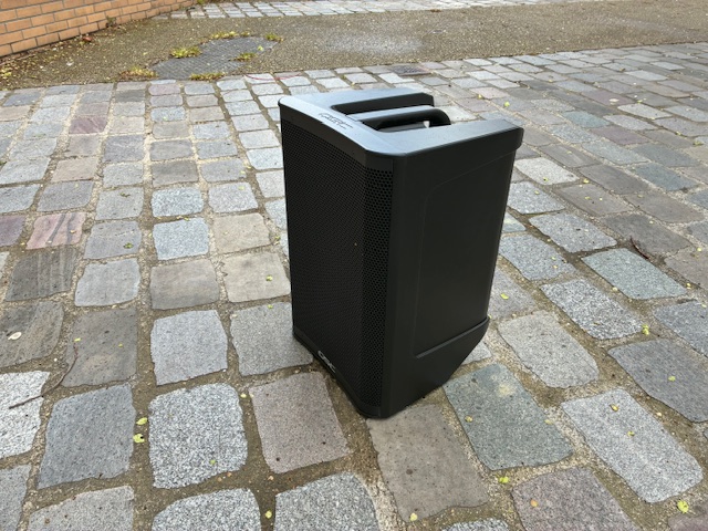 Naturellement, nous avons choisi de profiter du streaming via Bluetooth, mais aussi d’utiliser l’enceinte de manière classique, avec de bons vieux câbles. Pour les essais, nous avons simplement fait le choix de nous installer en extérieur afin d’écouter une sélection de morceaux connus de tous·tes, facilement accessibles, et qui possèdent des qualités de productions et de mixages indéniables, afin de juger l’enceinte pour ce qu’elle est et d’essayer de partager au mieux notre expérience d’écoute. Nous avons aussi pris le parti de tester une configuration live en intérieur, dans notre cabine d’enregistrement, avec une configuration similaire à ce qu’on pourrait retrouver dans un petit concert de rue : un micro voix (Shure SM58), un clavier numérique (Nord Stage 3), et un ensemble de câbles Vovox.