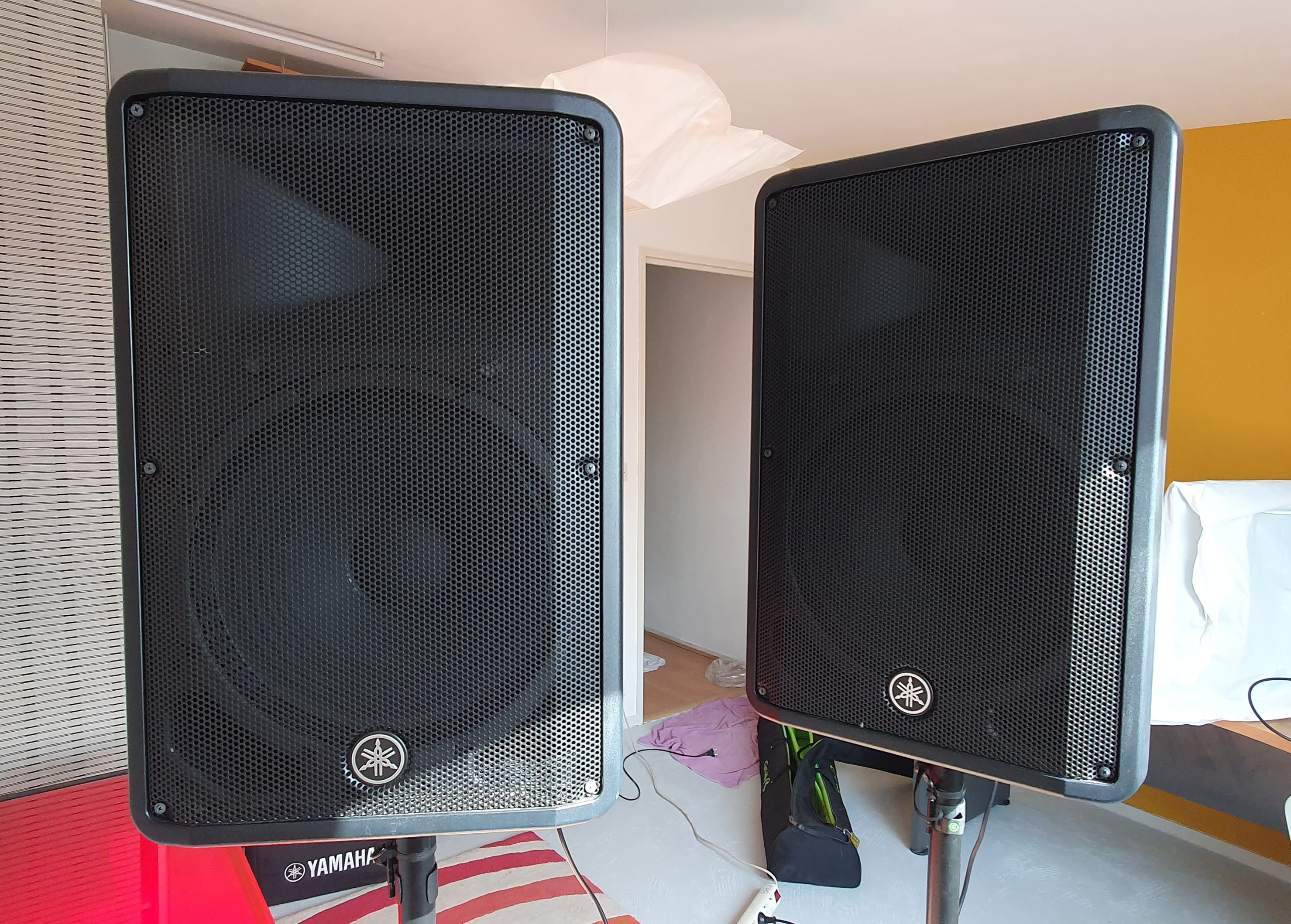 Pack Yamaha DBR15 + housses d'origine + pieds acier Gravity + housse transport