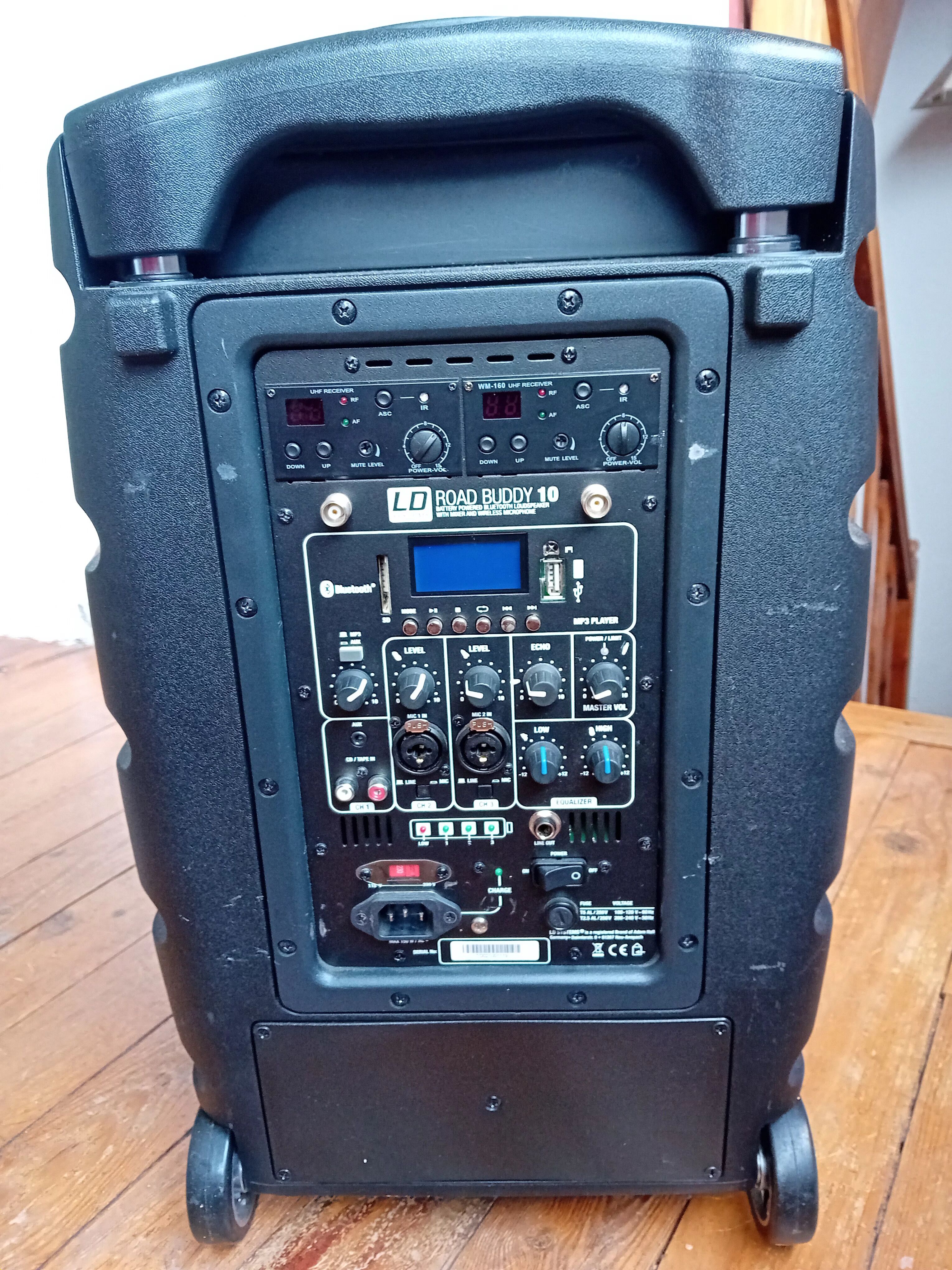Sono très efficiente qui m'a bien servi pour des représentations théâtrales.Simple et très pratique avec ses roulettes. C'est comme une valise à faire rouler. Son fonctionnement est vraiment facile.