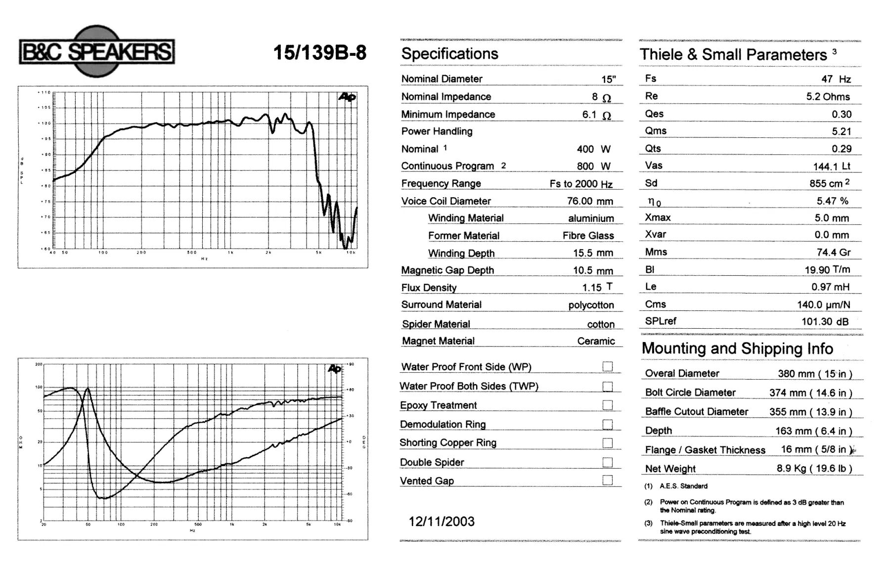| LF Driver(s) | 2 x 15 inch cast frame |