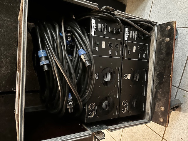 Puissance 2x3.5kw (140dB crête) avec l'amplification et câblage speakon en flight case.