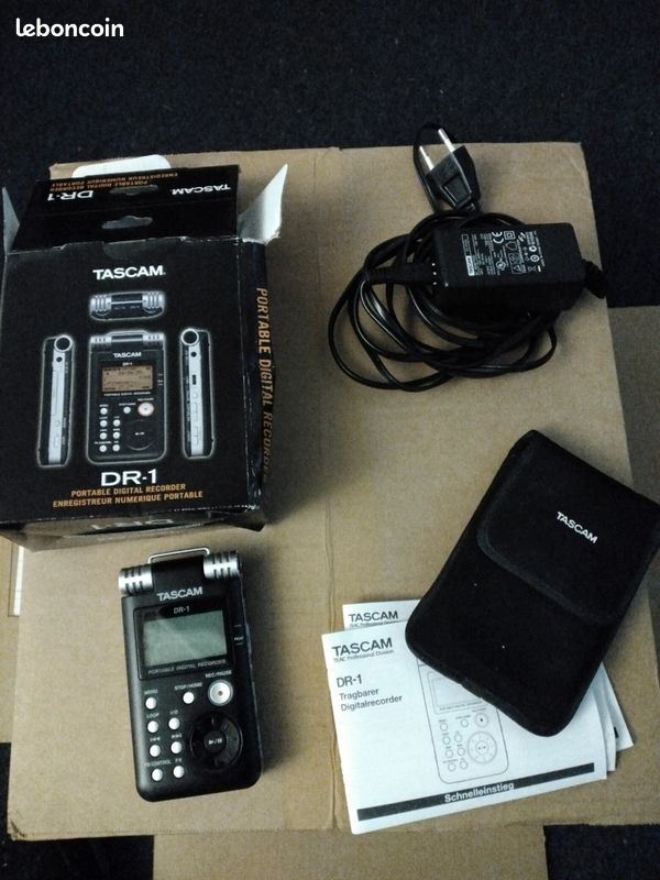 Enregistreur numérique de poche Tascam DR-1.Vendu avec carton d'origine, câble d'alimentation, housse et carte SD.