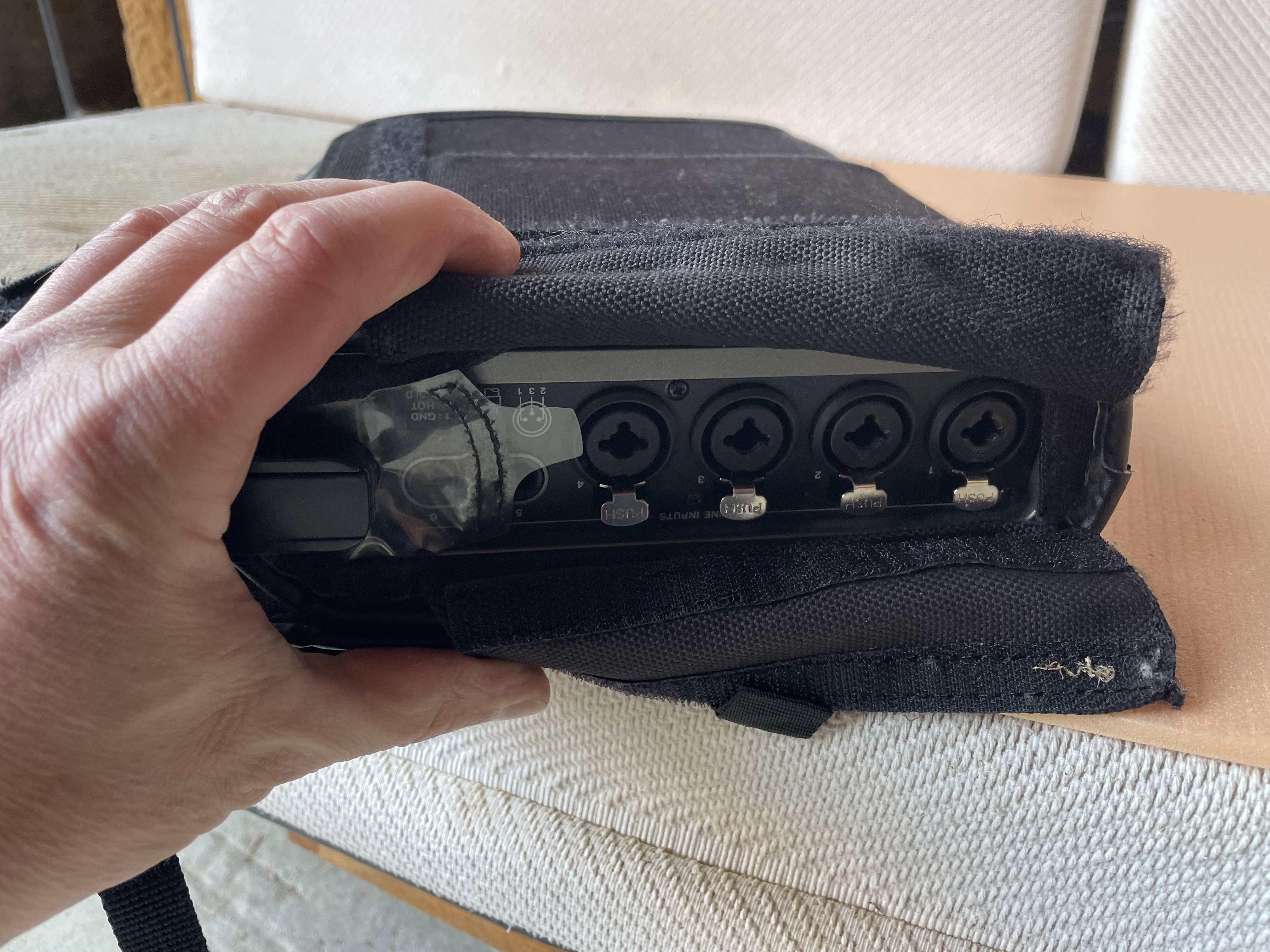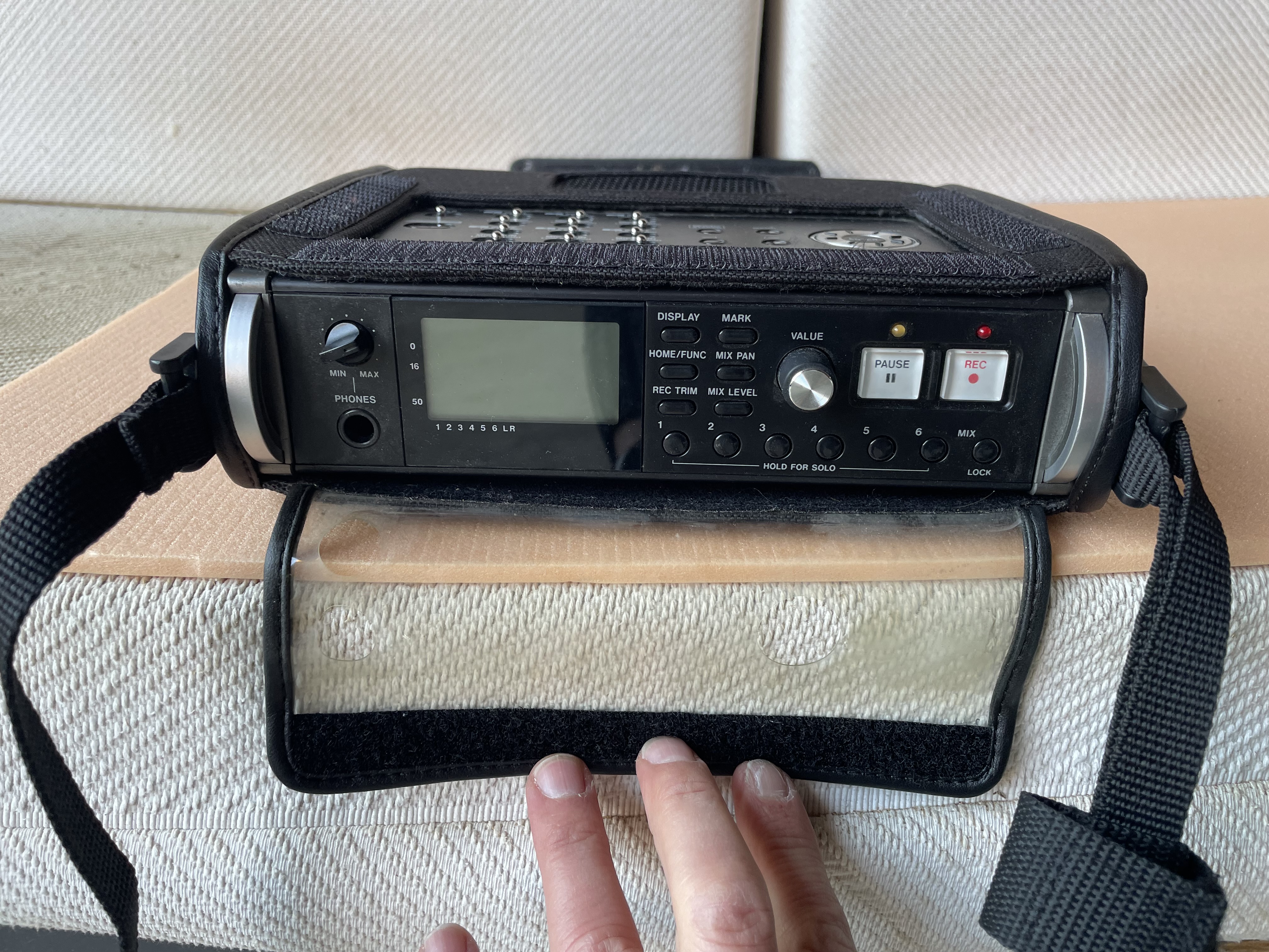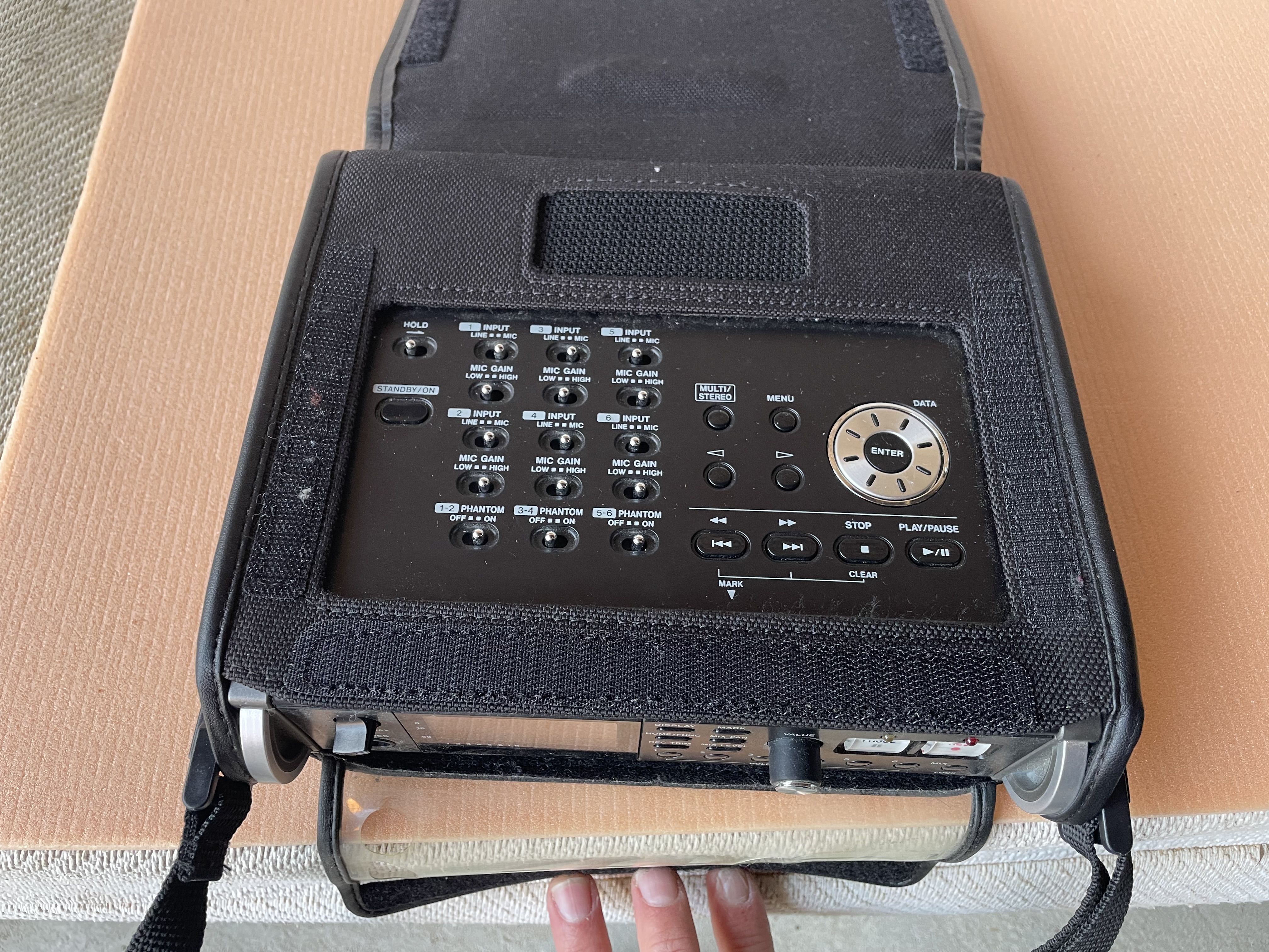 Enregistreur multipiste portable. Avec sa house, et bandoulière, prise de son cinéma, nature, musique etc. 6 pistes simultanées, 4xlr alim phantom, 2 jack trs, liaison numérique spdif aes, sortie ligne etc. En parfait état, Preamplis vraiment très clean, matériel de prise de son professionnel, ergonomie pro.
