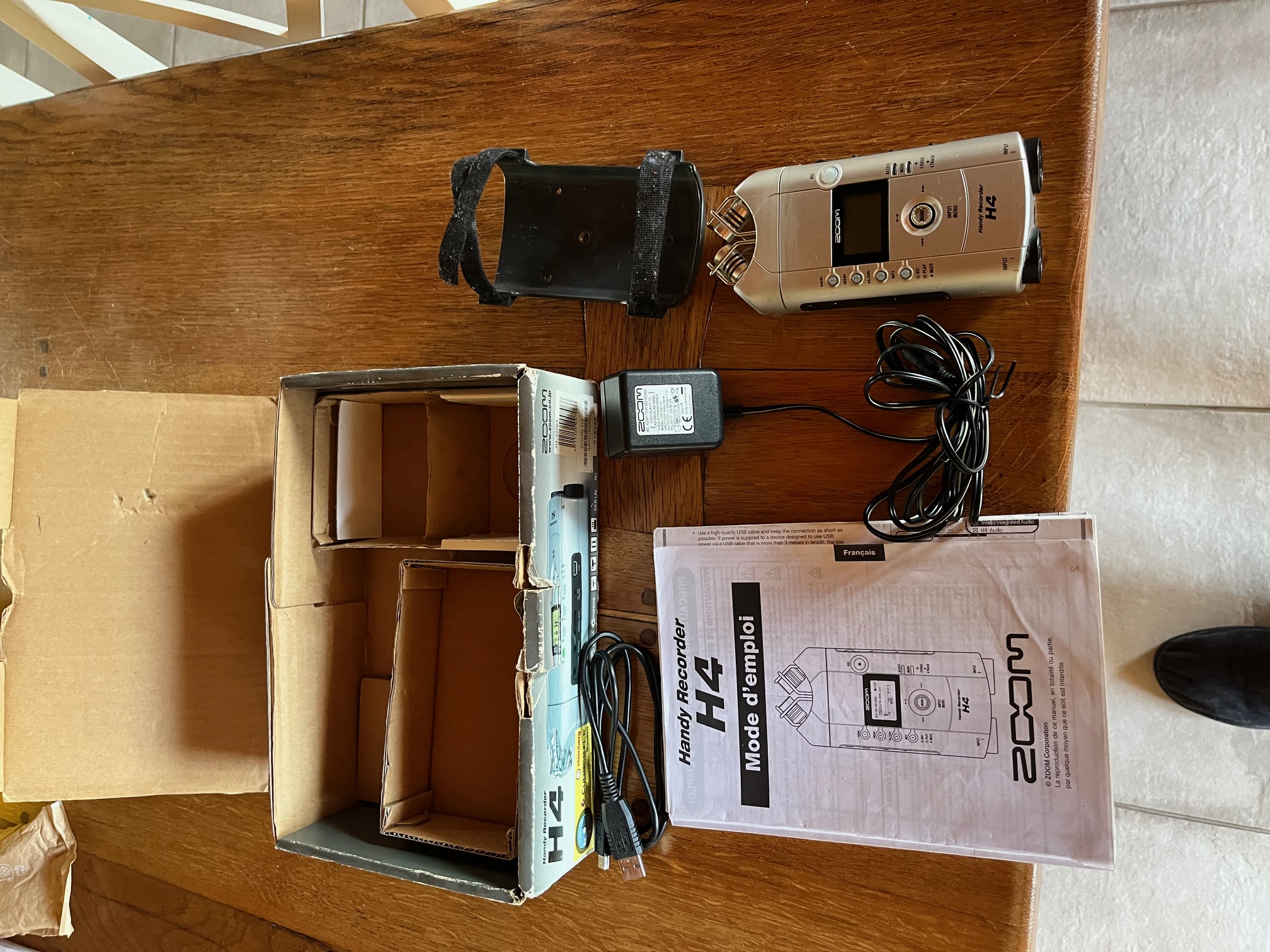 Vends zoom h4 dont je ne me sers plus. Livré avec sa boite, son cordon d'alimentation ,sa bonnette, son support, sa notice et une carte HD 2 G.