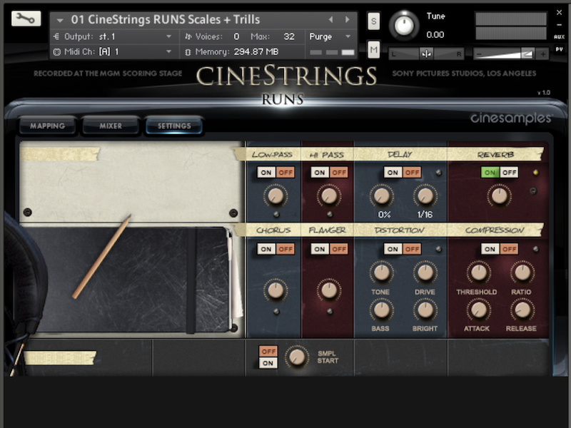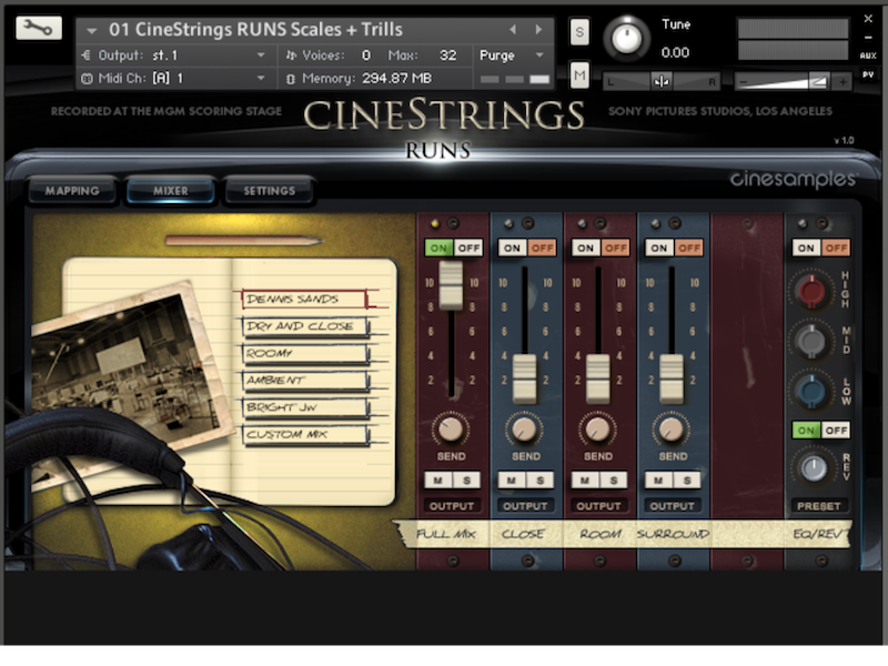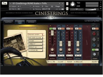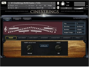 CineStrings Runs comprend les runs, gammes et rips d’une section de cordes enregistrée au MGM Scoring Stage aux Studios Sony Pictures à Los Angeles. La banque pourra compléter les CineStrings Core et la collection Hollywoodwinds également produites par Cinesamples.