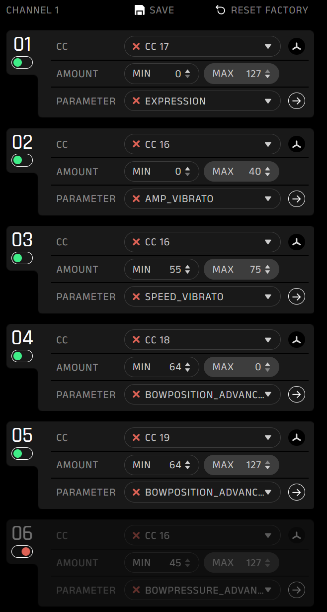 De plus, dans la catégorie « advanced », on trouve plusieurs réglages supplémentaires pour affiner la position, l’intensité, l’attaque, la pression et même le bruit de l’archet. Rien n’est figé et les préréglages fournis par Expressive E servent avant tout de bases solides à personnaliser.