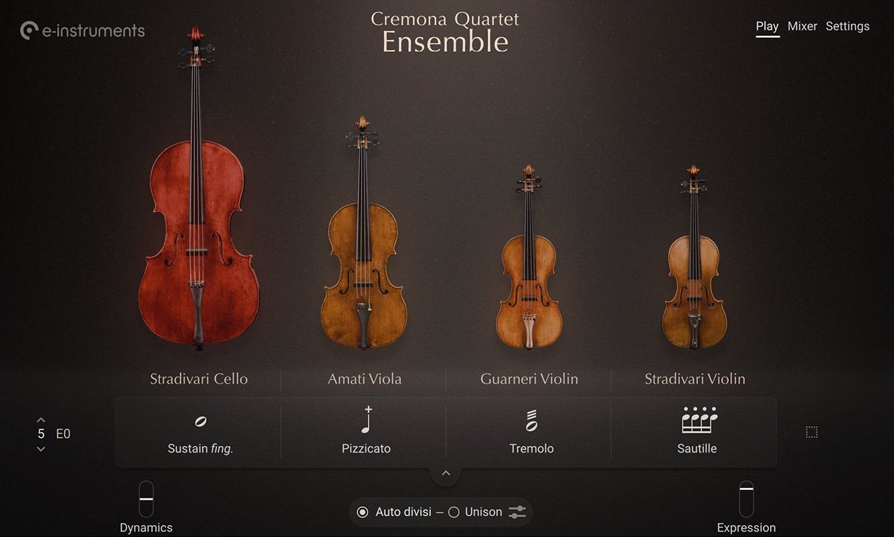 Le "Cremona Quartet" qui est un outil réputé et réaliste de quatuor à cordes parmi les meilleurs sur le marché.