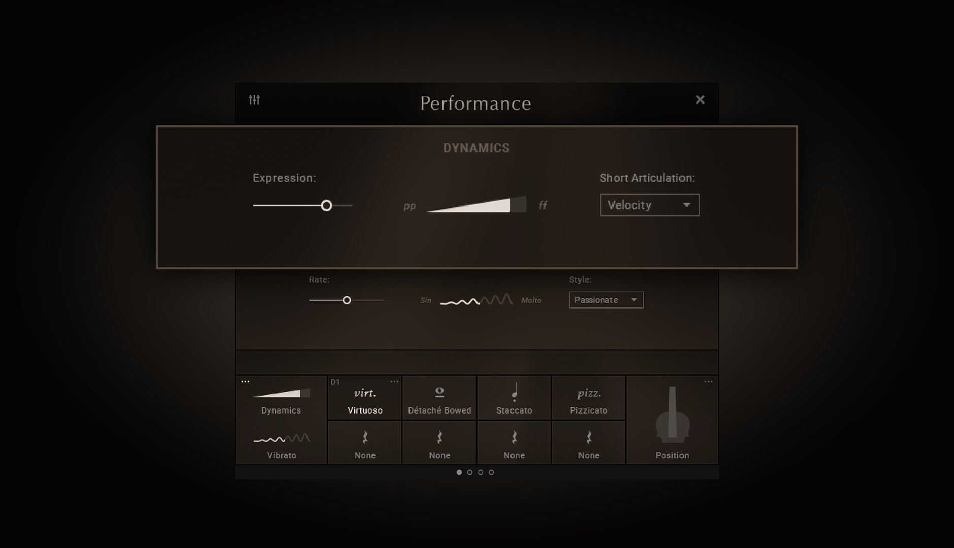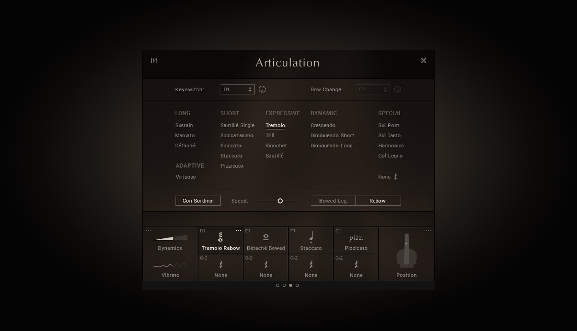 • Véritable vibrato et vibrato modélisable pour les articulations Sustain, Marcato et Virtuoso