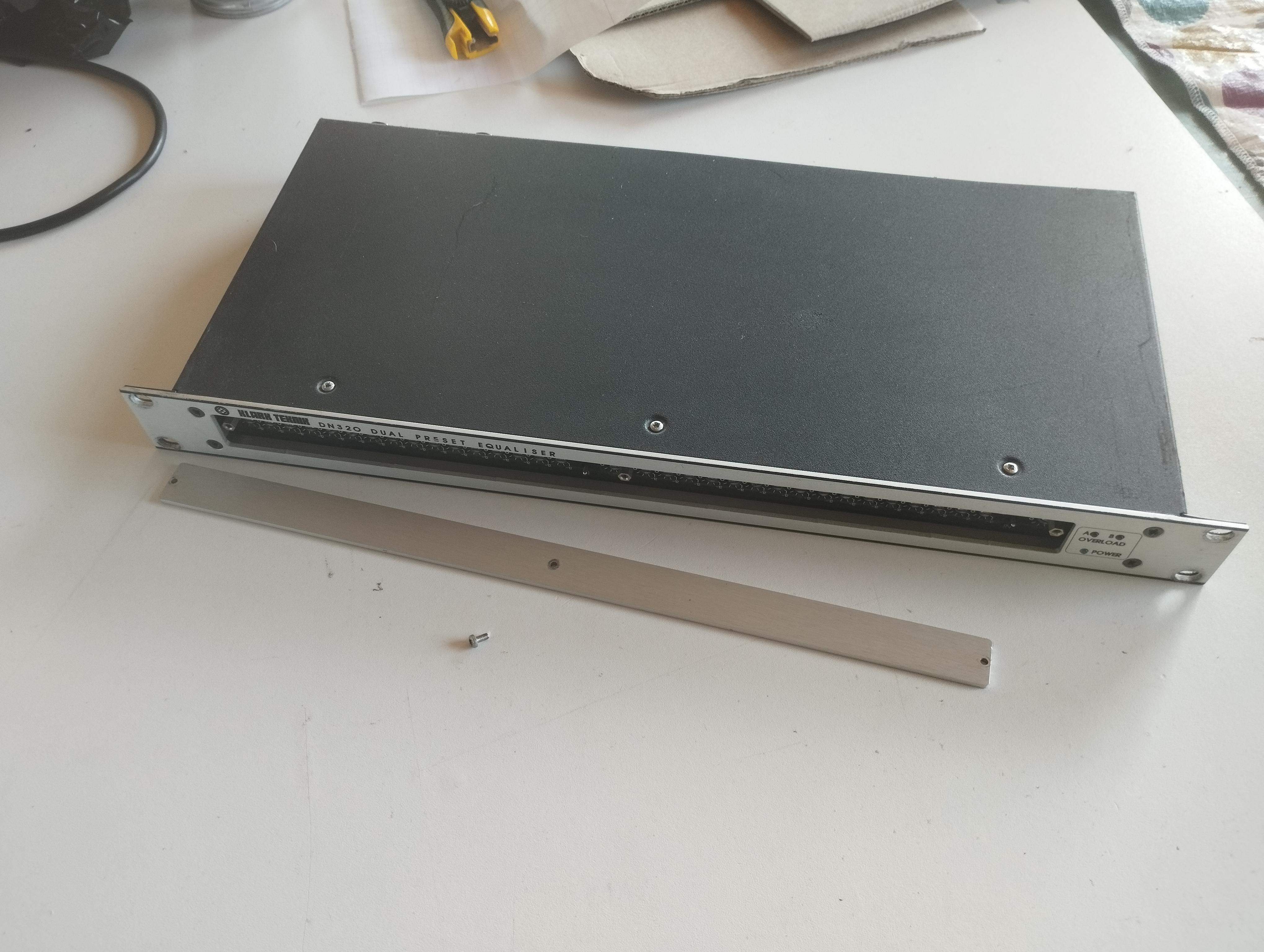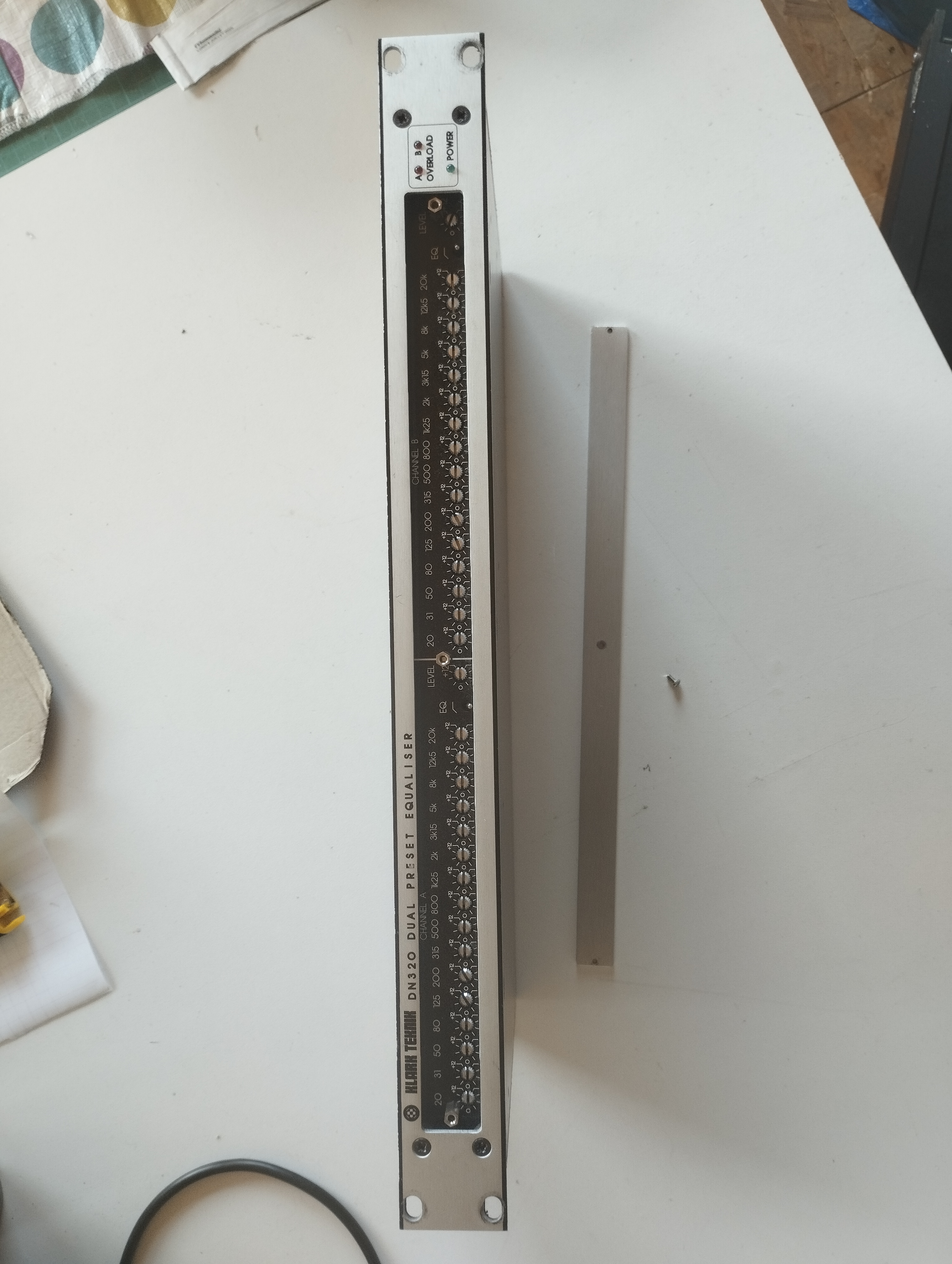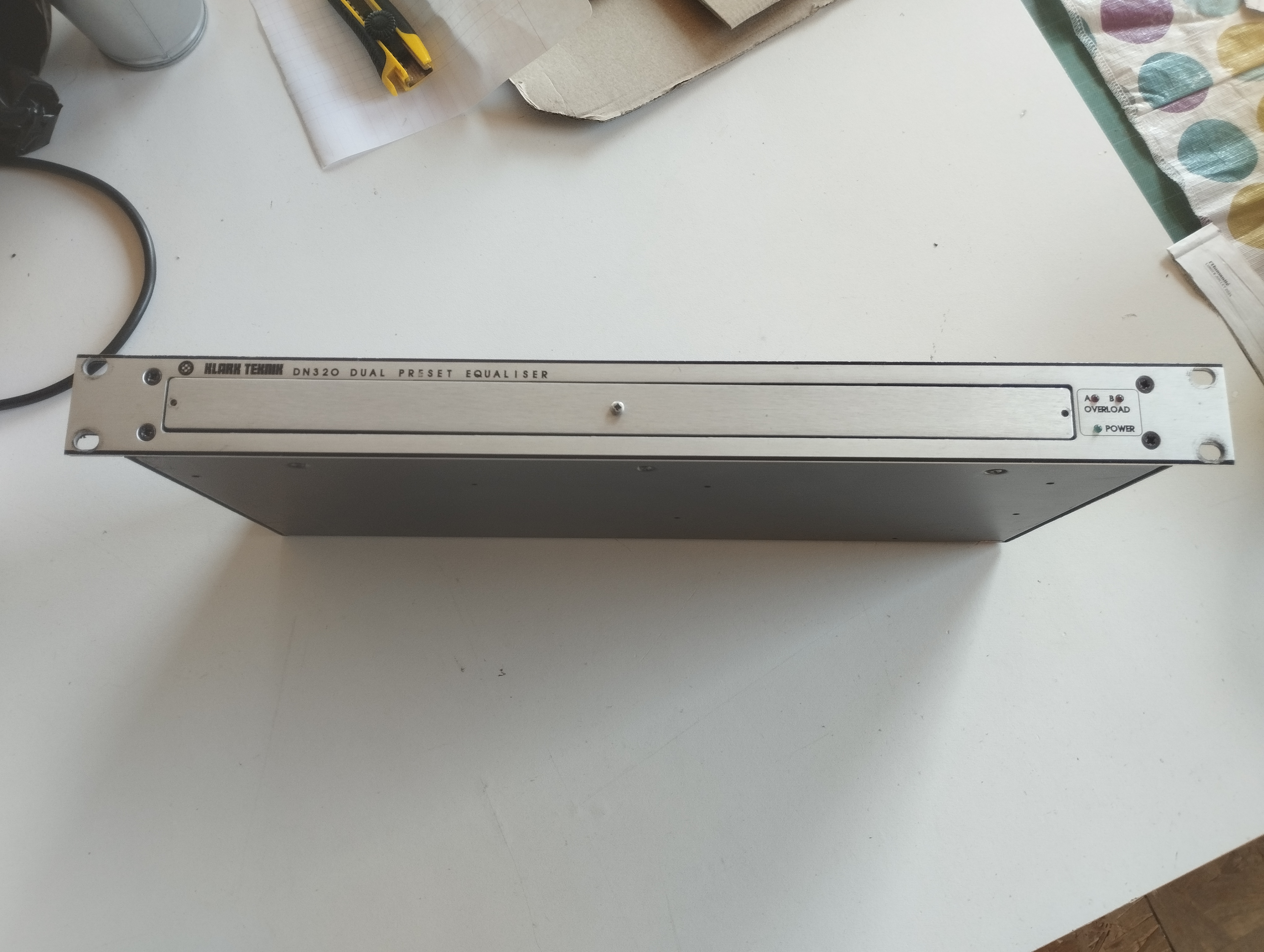 je vends un égaliseur stéréo graphique rack 1u Klark Teknik DN320, réputé pour le calage de système son. très pratique avec sa plaque avant qui permet de régler son présent une bonne fois pour toutes. matos vintage mais qui sonne grave. idéal sound system dub techno ou sonorisation fixe.envoi possible, n'hésitez pas à faire un lot avec mes autres articles (j'ai pas mal de matos à vendre) !