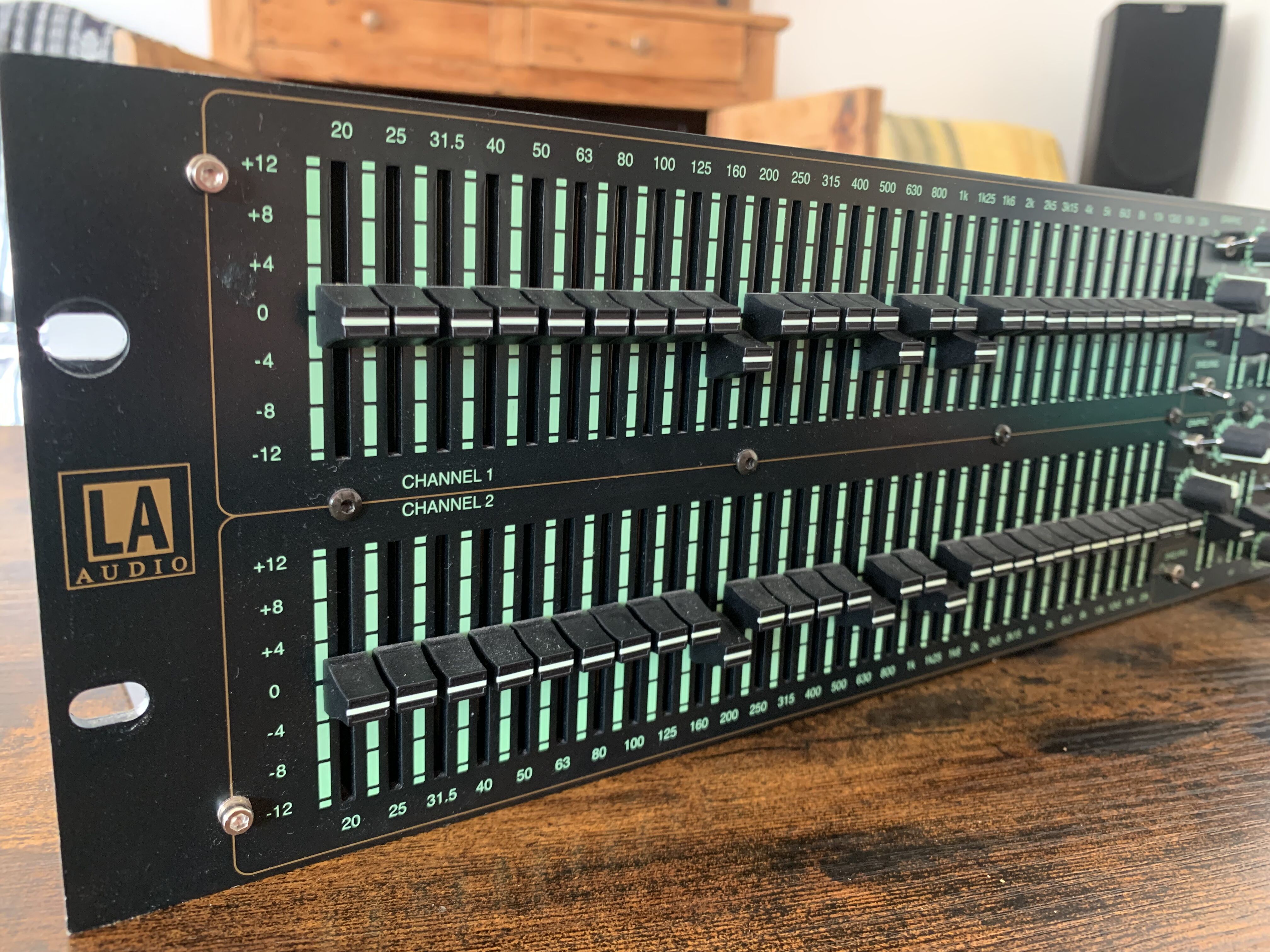- Égaliseur graphique 2 canaux, 31 bandes, 1/3 d'octave, avec filtres passe-haut et passe-bas variables et commutateurs de bypass pour chaque canal.
