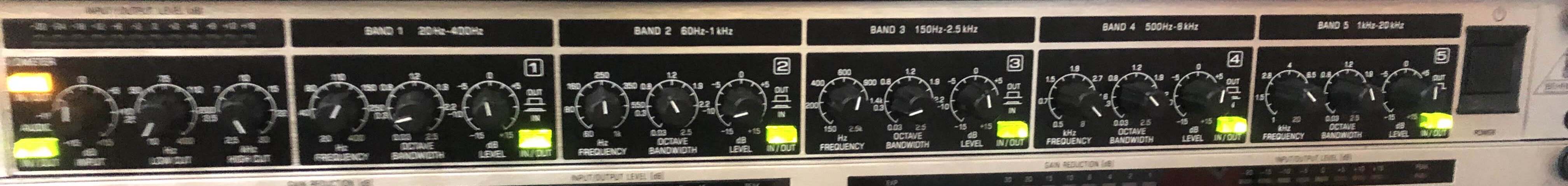 Vend EQ paramétrique 5 bande + LF/HF Behringer Ultra-Q Pro PEQ2200.Chaque bande à un réglage de fréquence, de Q et de gain, avec bypass.