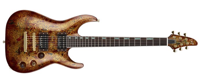Regroupées sous la série 40th Exhibition Limited, ces guitares et basses ont été pensées et fabriquées à la main par le Custom Shop d’ESP à Tokyo. Il s’agit de modèles uniques utilisant des matériaux haut de gamme, des techniques de fabrication de haut vol et des finitions sculptées.
