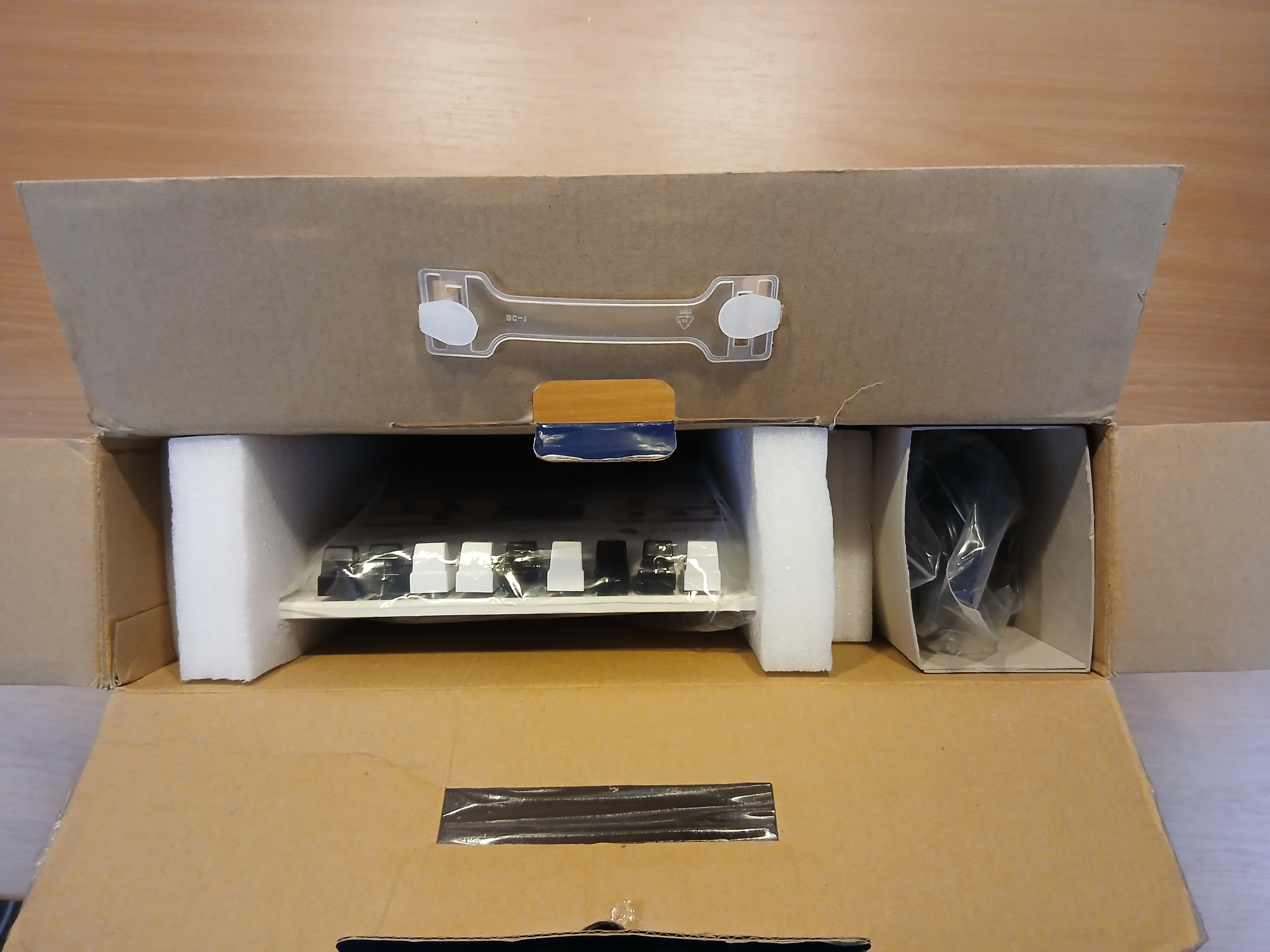 Bande velcro collée dessous, de façon à le faire tenir sur le bord du clavier