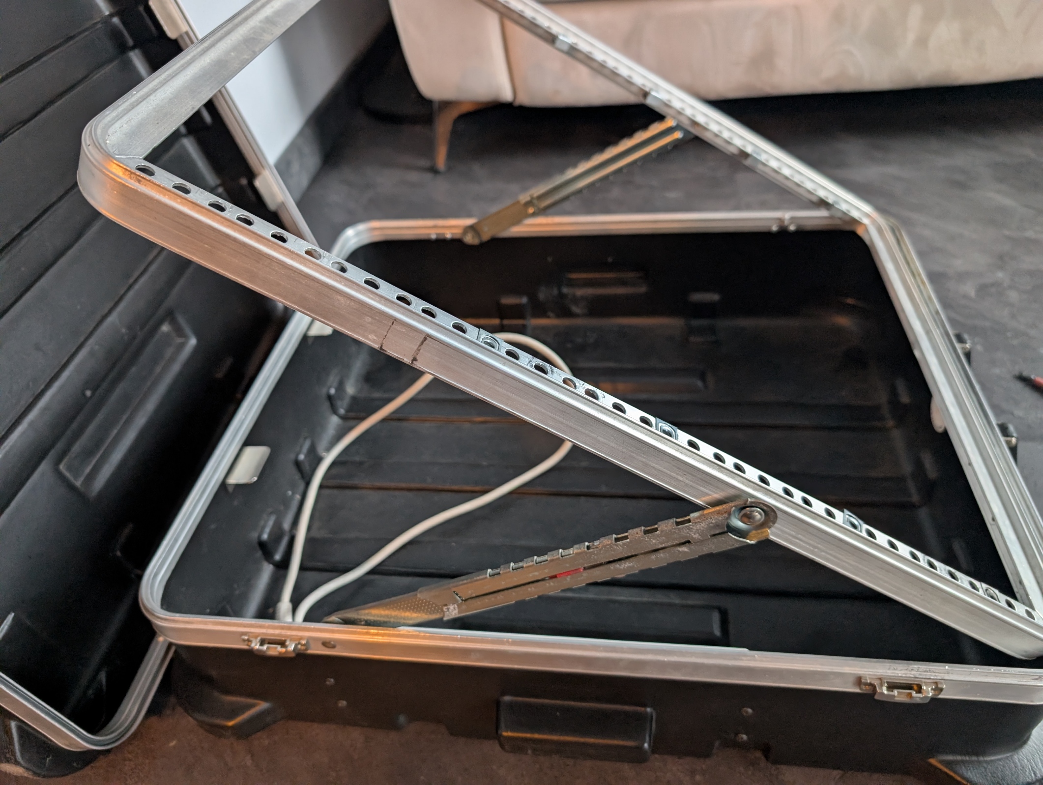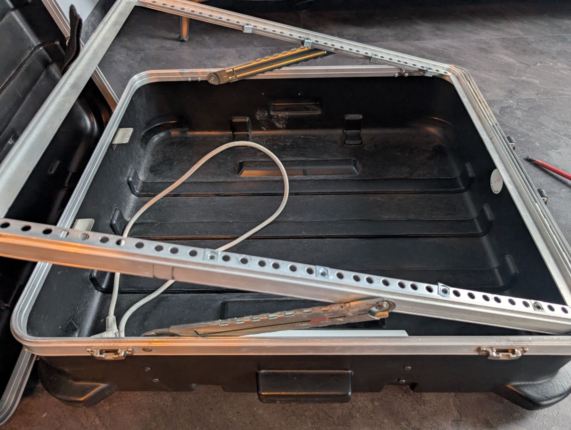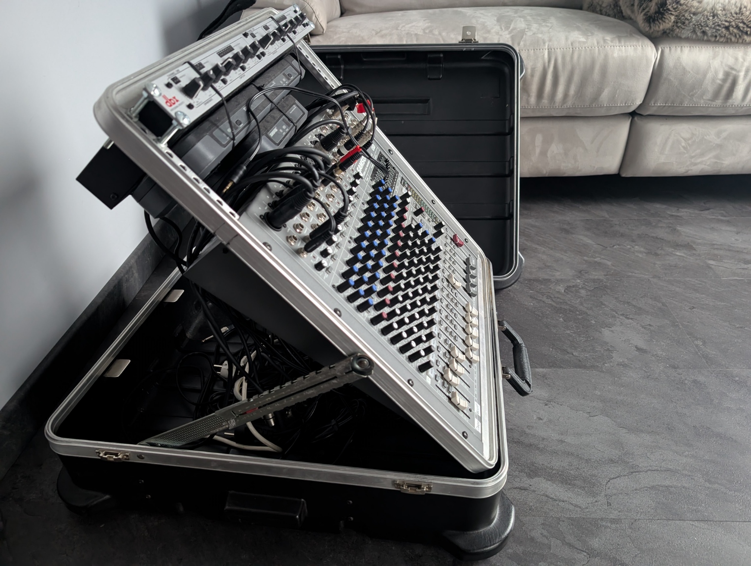 Je vends une valise SKB Pop-Up 12U pour console ou rack 19".Système inclinable très pratique pour utiliser la table sans la sortir du flight-case.