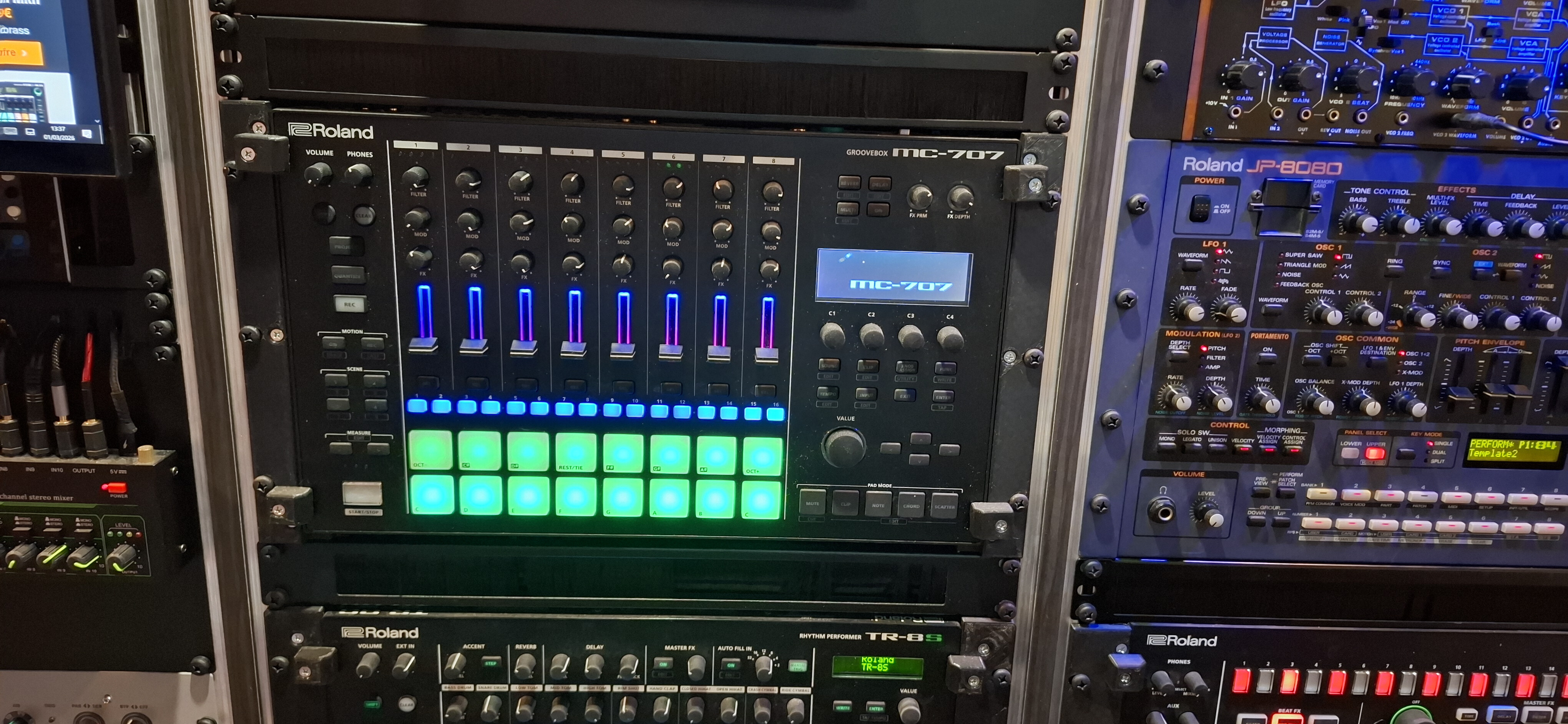 Avant la MC-707 j'ai possédé pendant plus de 25 ans, une MC-303; Cette dernière a été utilisée pendant quasiment 10 ans, avant de terminer au grenier, en attendant de retrouver de l'inspiration.. et le courage de supprimer des set.. car sur la 303, on ne peut pas mettre de carte mémoire.. quand c'est plein, il faut vider.. (ou prier pour qu'un dump midi marche);
