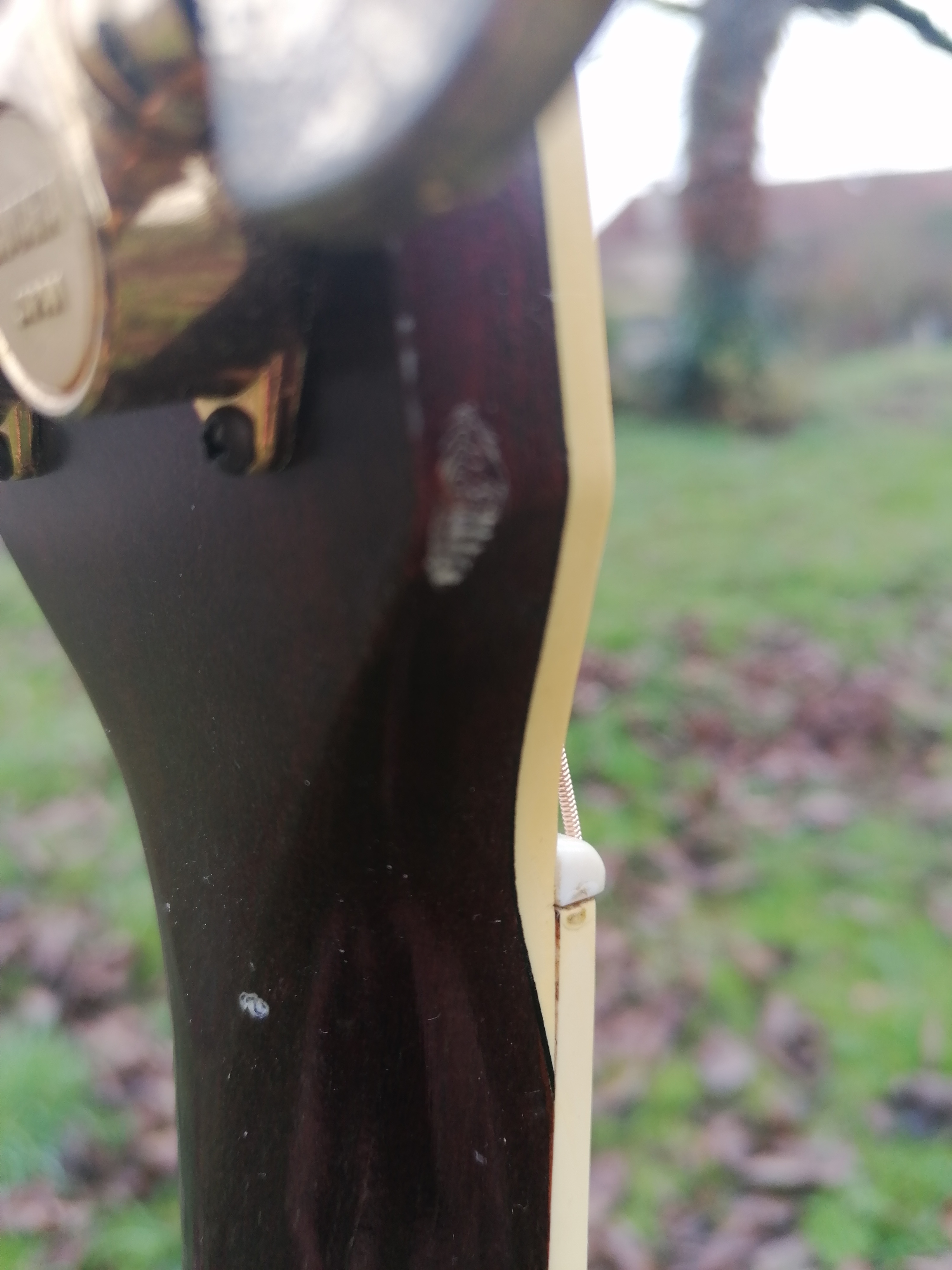 Visuellement, elle comporte quelques très légers pocs sur l’arrière du manche et sur la table (deux, voir photos).