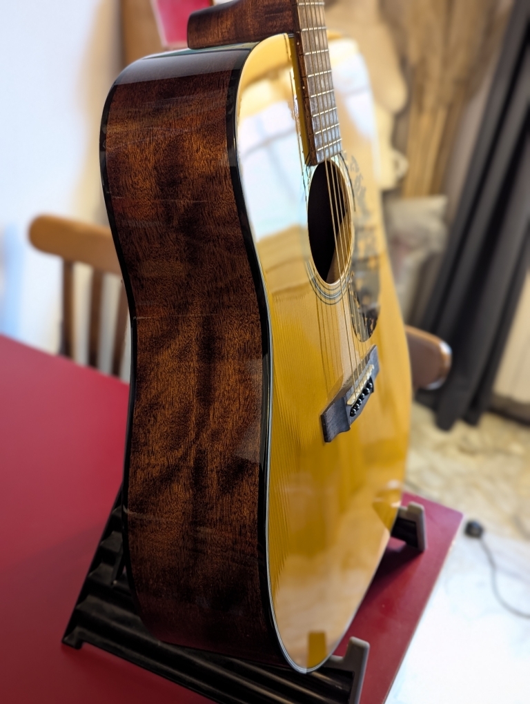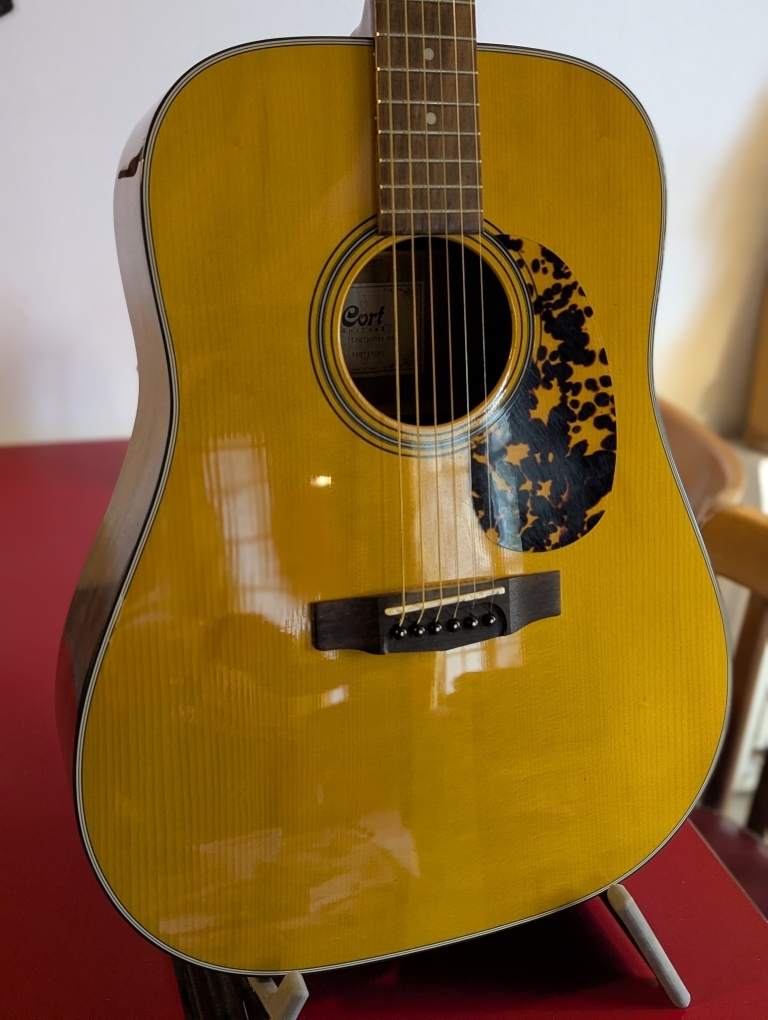 Le haut de gamme de la série Earth de chez Cort (gamme vintage), toute massive.Modèle ouvertement inspiré par la J45 de chez Gibson et on est nettement dans la même famille de son et pour le prix, c'est surprenant.