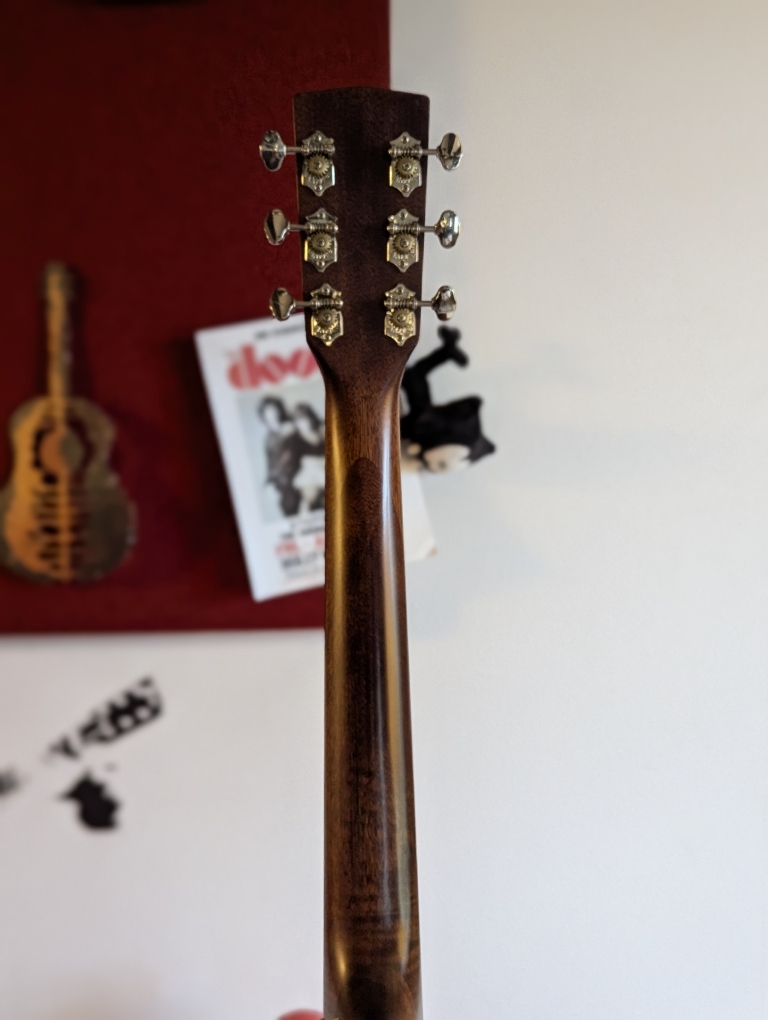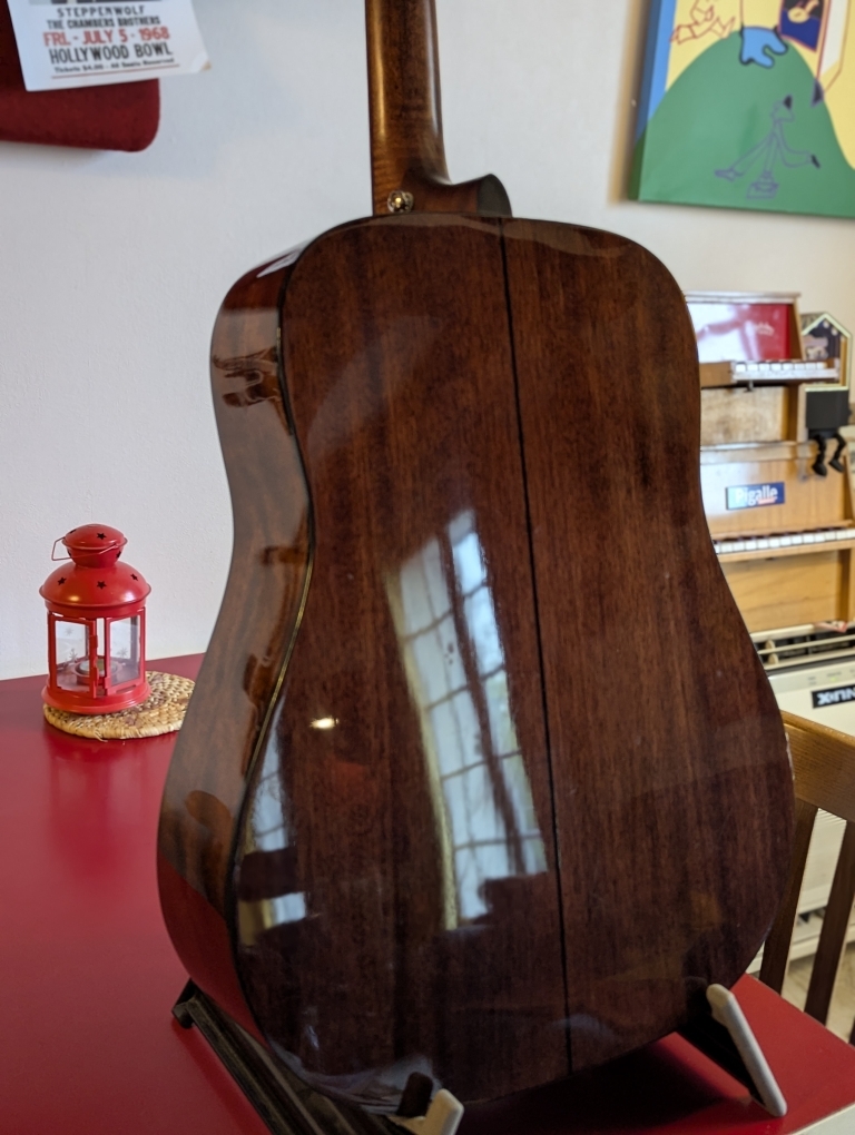 - Fond acajou massif & éclisses acajou.