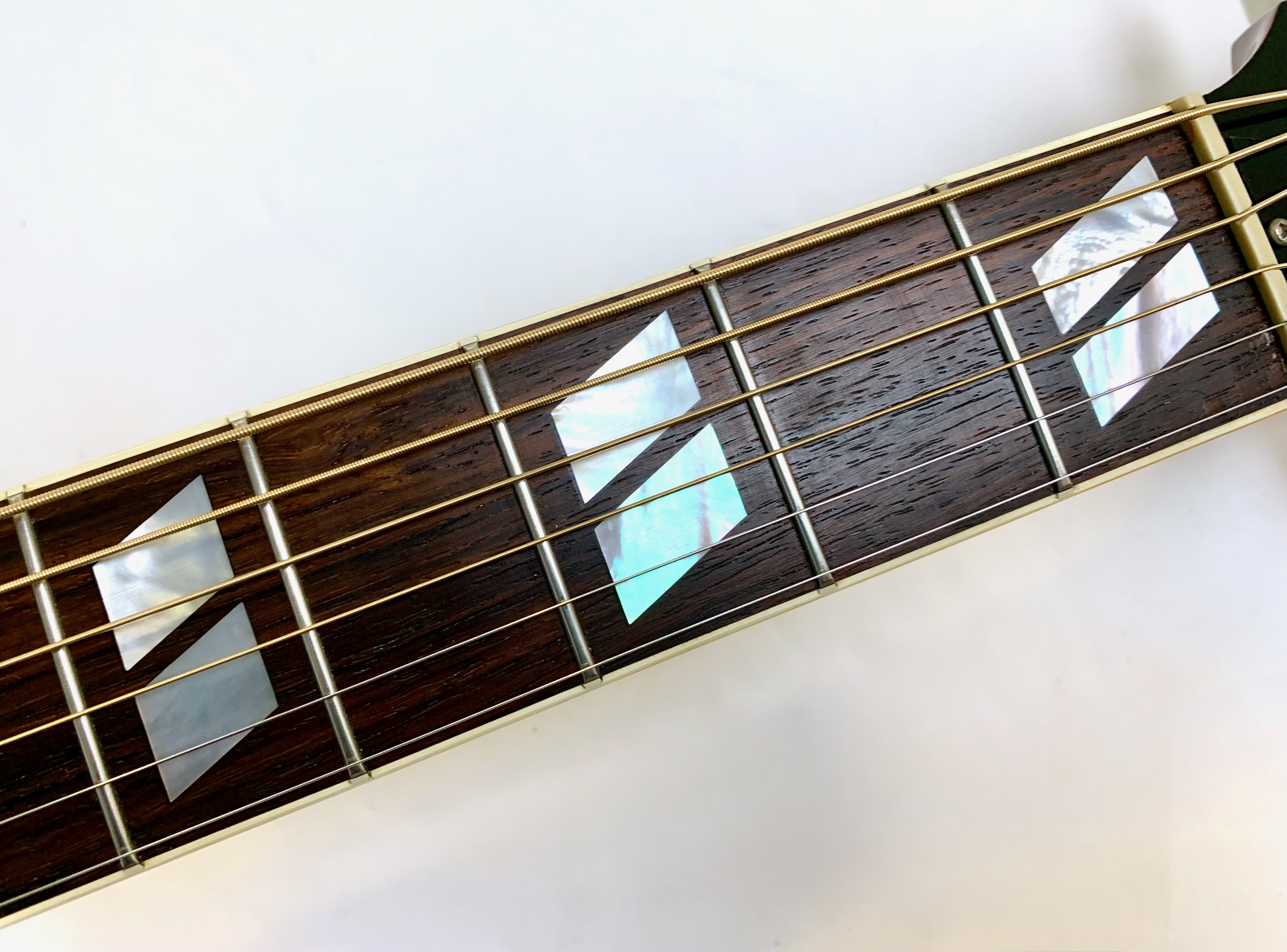 Voici le modèle signature, première du nom, de Sheryl Crow, basé sur sa Country Western de 1962. On trouve donc une caisse "square shoulder" avec une table en sitka, les éclisses, le dos et le manche sont en acajou, dans la plus pure tradition de la marque. La touche en palissandre se pare de repères split parallelograms, la tête, de la jolie couronne et le pickguard est magnifique. Electro-acoustique, vendue avec ses papiers dans son étui d’origine.Dépôt-vente, achat, vente, reprise, location.