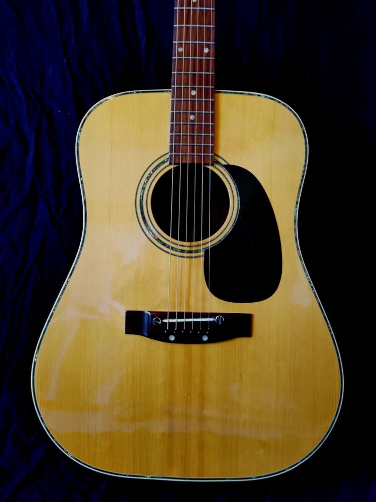 Je vends ma Kiso Suzuki W-180 (Grand-Suzuki) des année 1970 en très bon état. Inspirée de la mythique Martin D-28, elle a une action très basse (réglée par luthier) qui lui offre un réel confort de jeu.Cette guitare a traversé le temps ! En effet à presque 50 ans, elle a bien sûr quelques petites rides et rayures (minimes non visibles sur les photos).