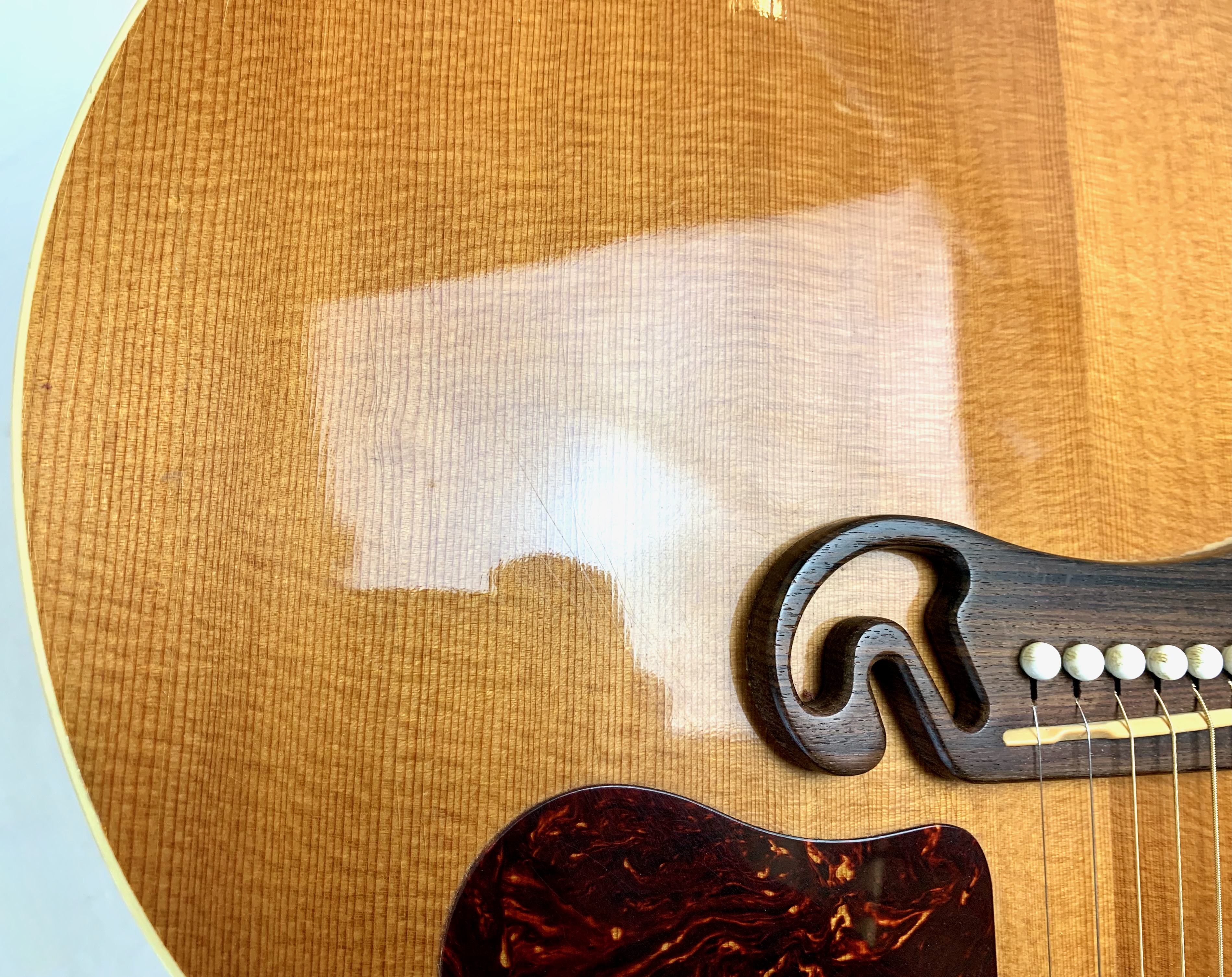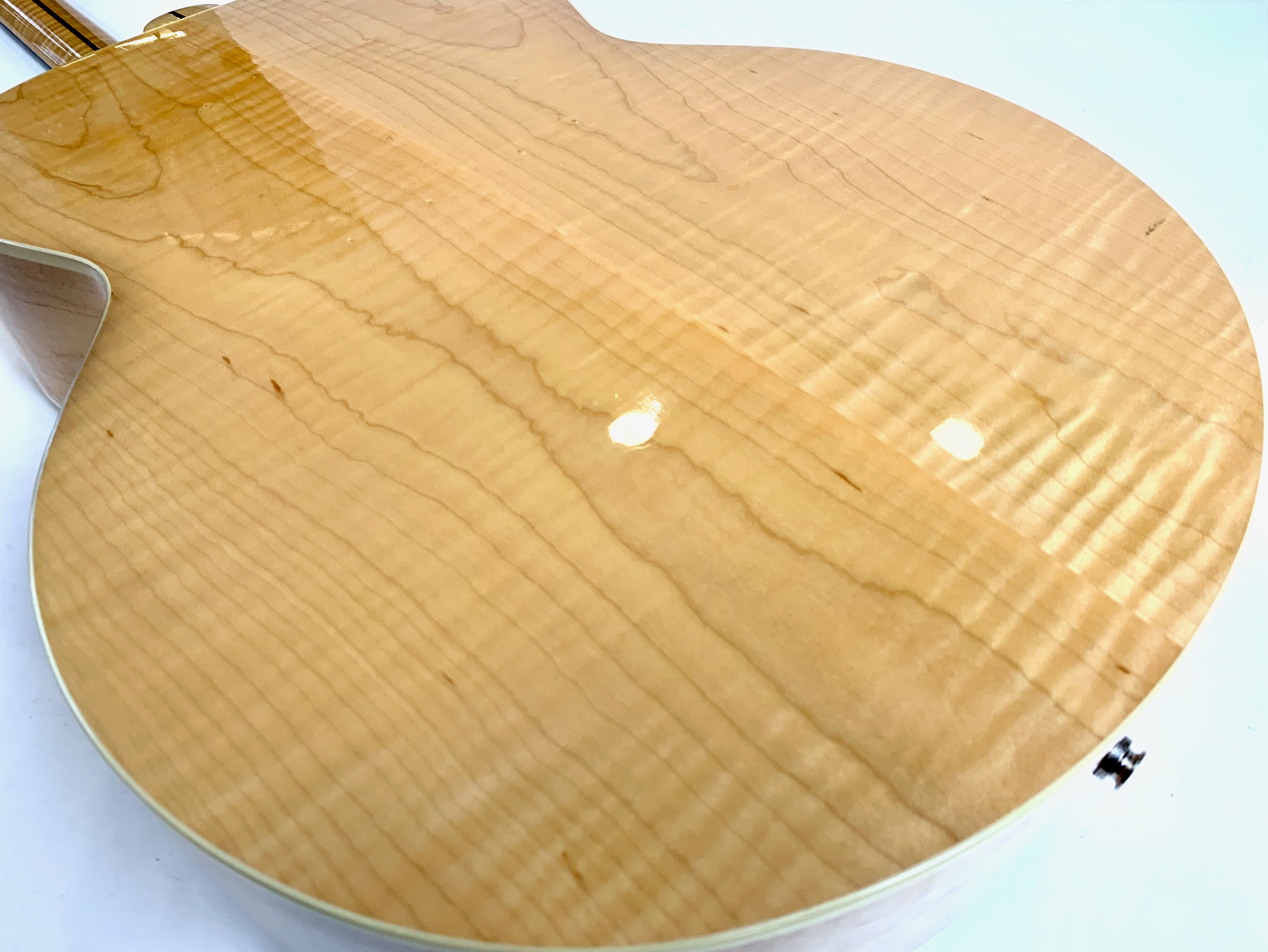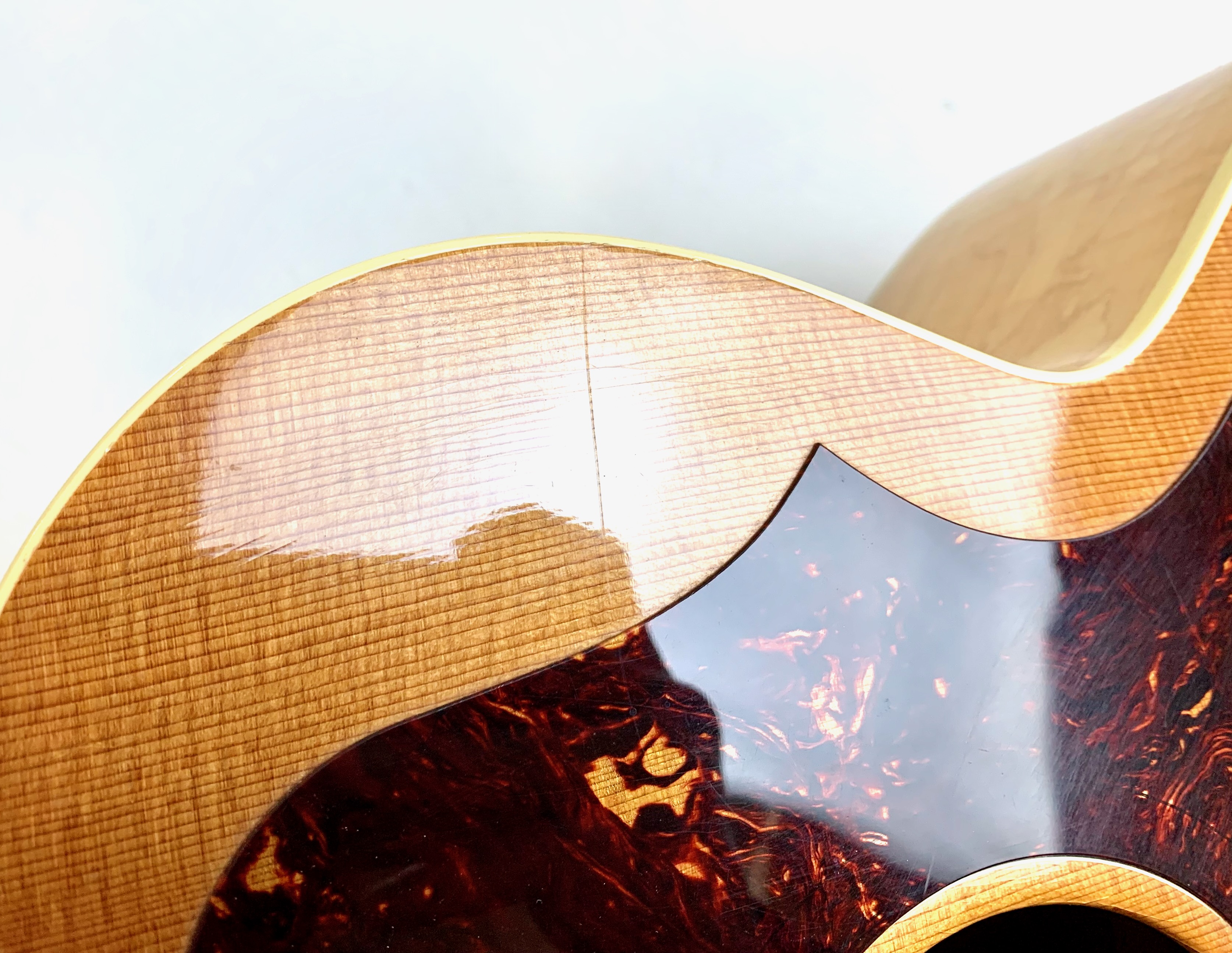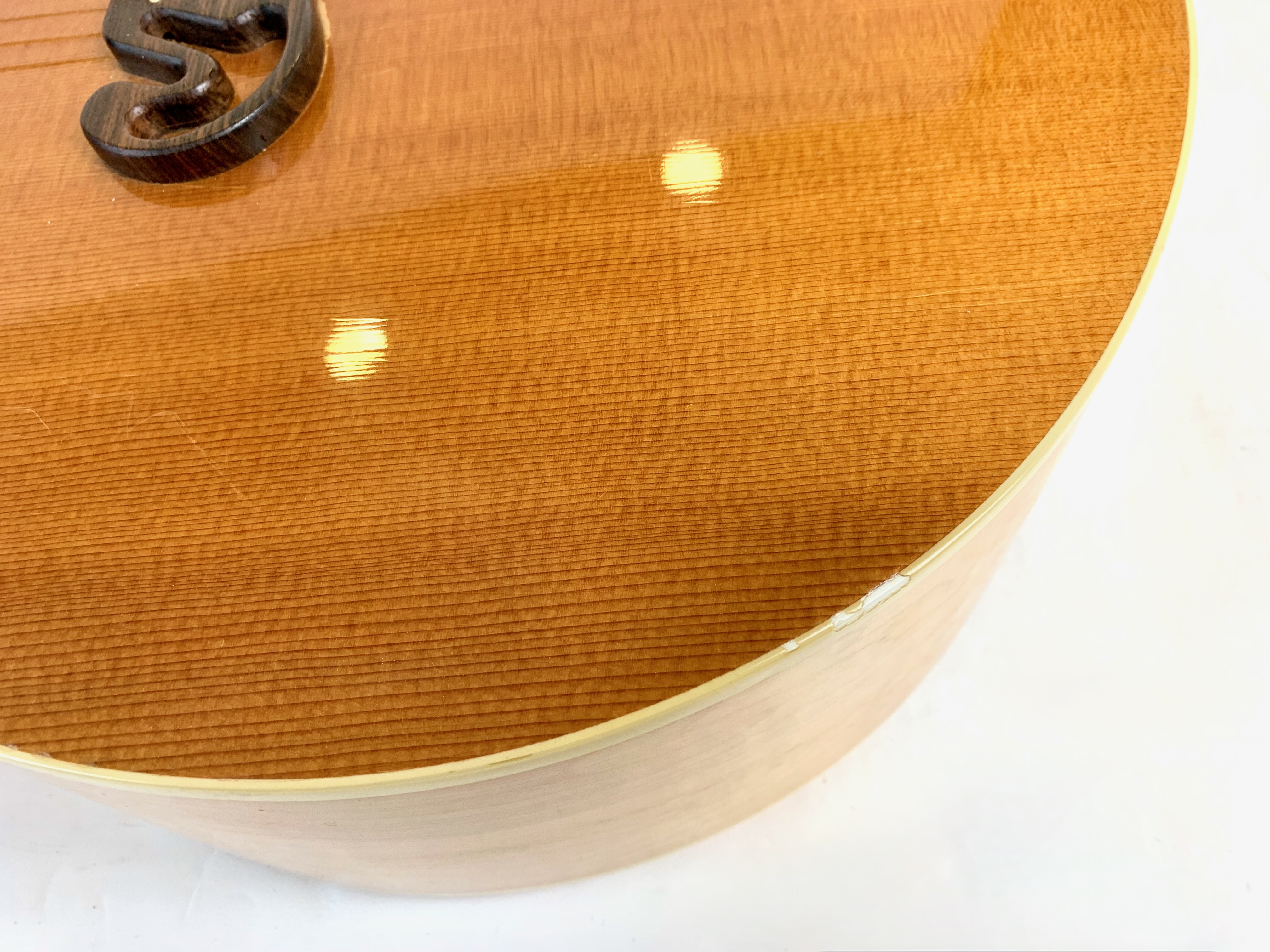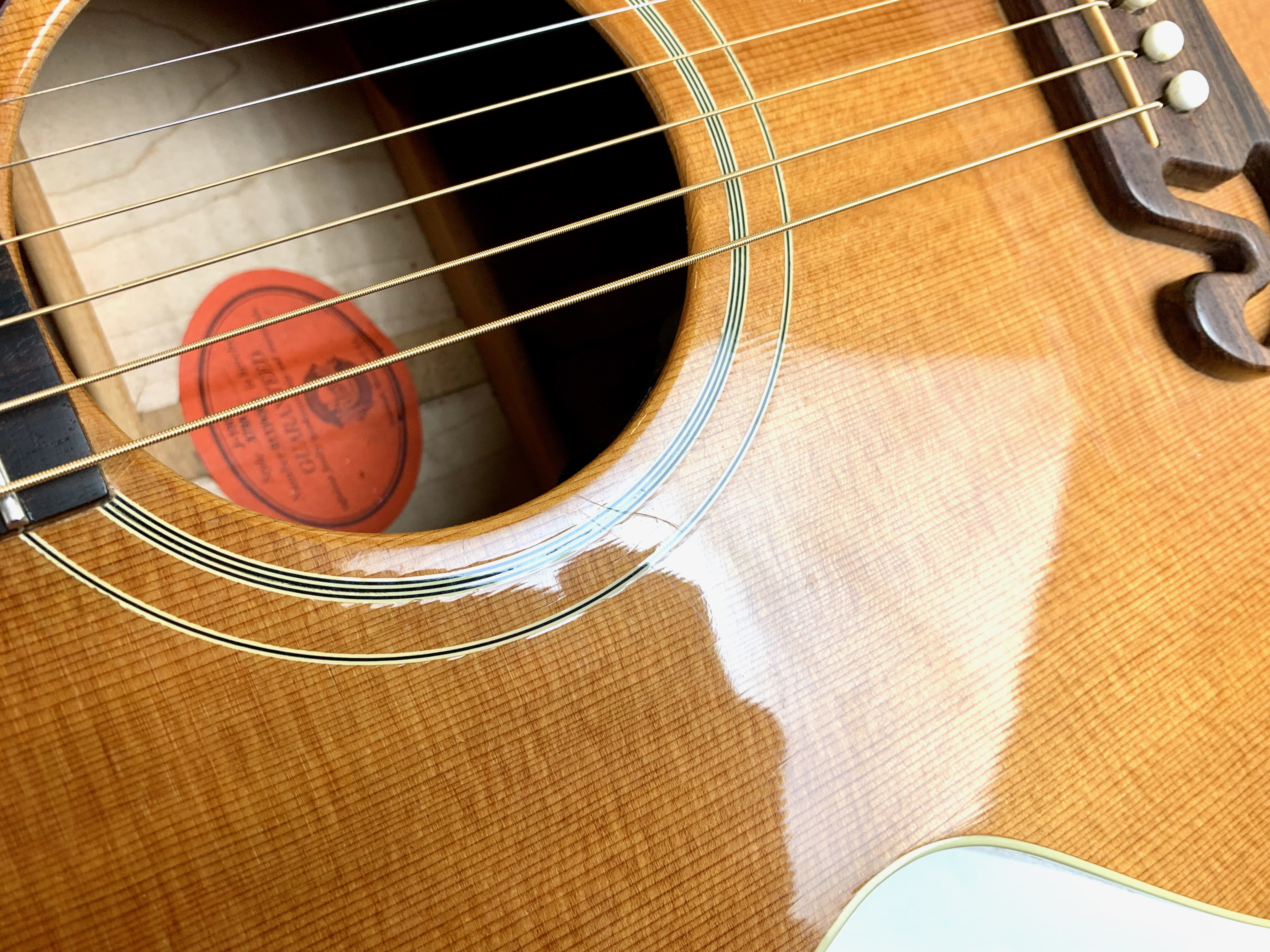 Cette magnifique J100 est la soeur de la reine des Jumbo : la SJ-200. Le manche, le dos et les éclisses en érable fortement ondé offrent un visuel somptueux. La table est faite d'épicéa et la touche de palissandre. On retrouve les éléments iconiques du modèle : le célèbre chevalet moustache ou encore les inlays finement décorés. Côté amplification, elle est équipée d’un micro Fishman, pour un son naturel et précis sur scène. Facile à jouer, elle sort d'un refrettage par le luthier Jean-Baptiste Prodhomme, elle se distingue par son équilibre sonore remarquable. En très bon état, livrée avec ses papiers dans son étui d’origine.Location, achat, vente, reprise, dépôt-vente.