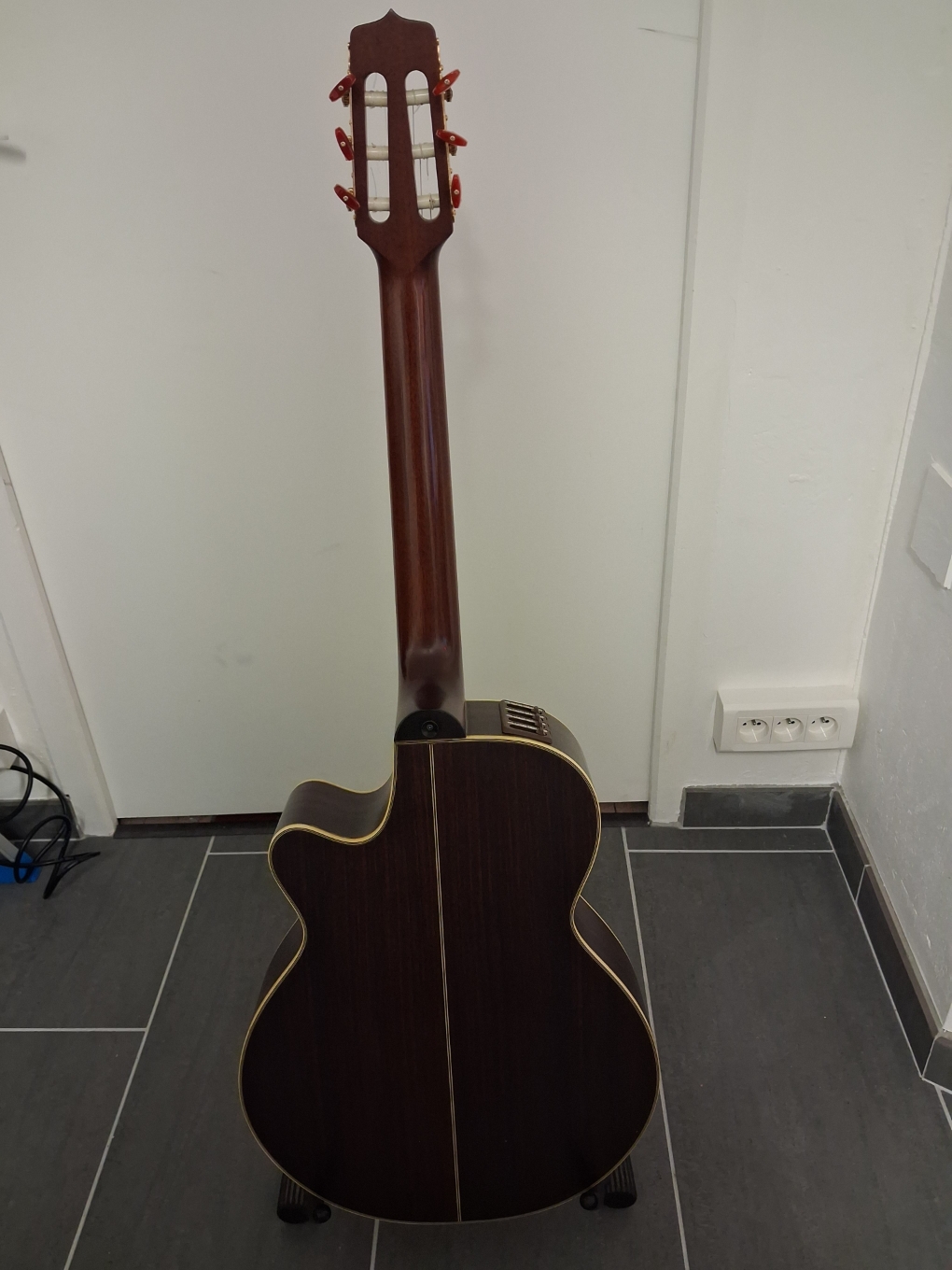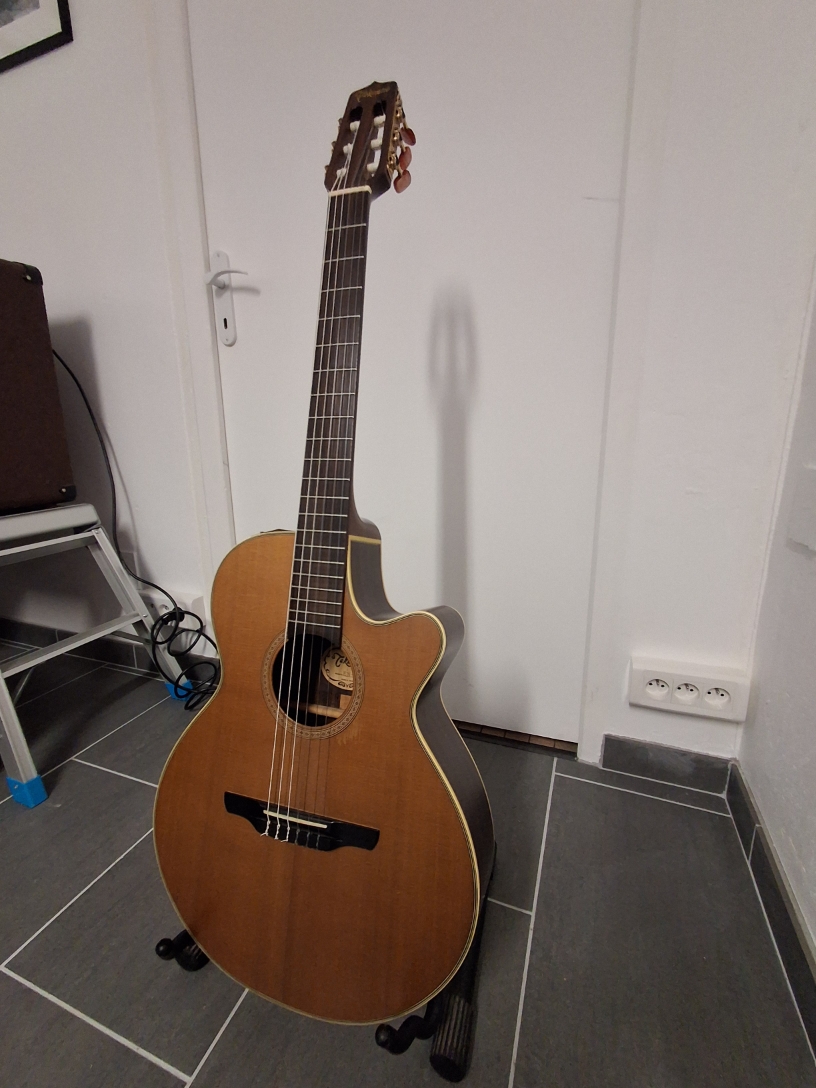 C’est une guitare qui a été bien jouée par son précédent propriétaire mais moi qui la possède depuis +10 ans je ne la joue pas suffisamment. Autant donc qu’elle profite à un guitariste qui saura tirer le meilleur de cet instrument de qualité.