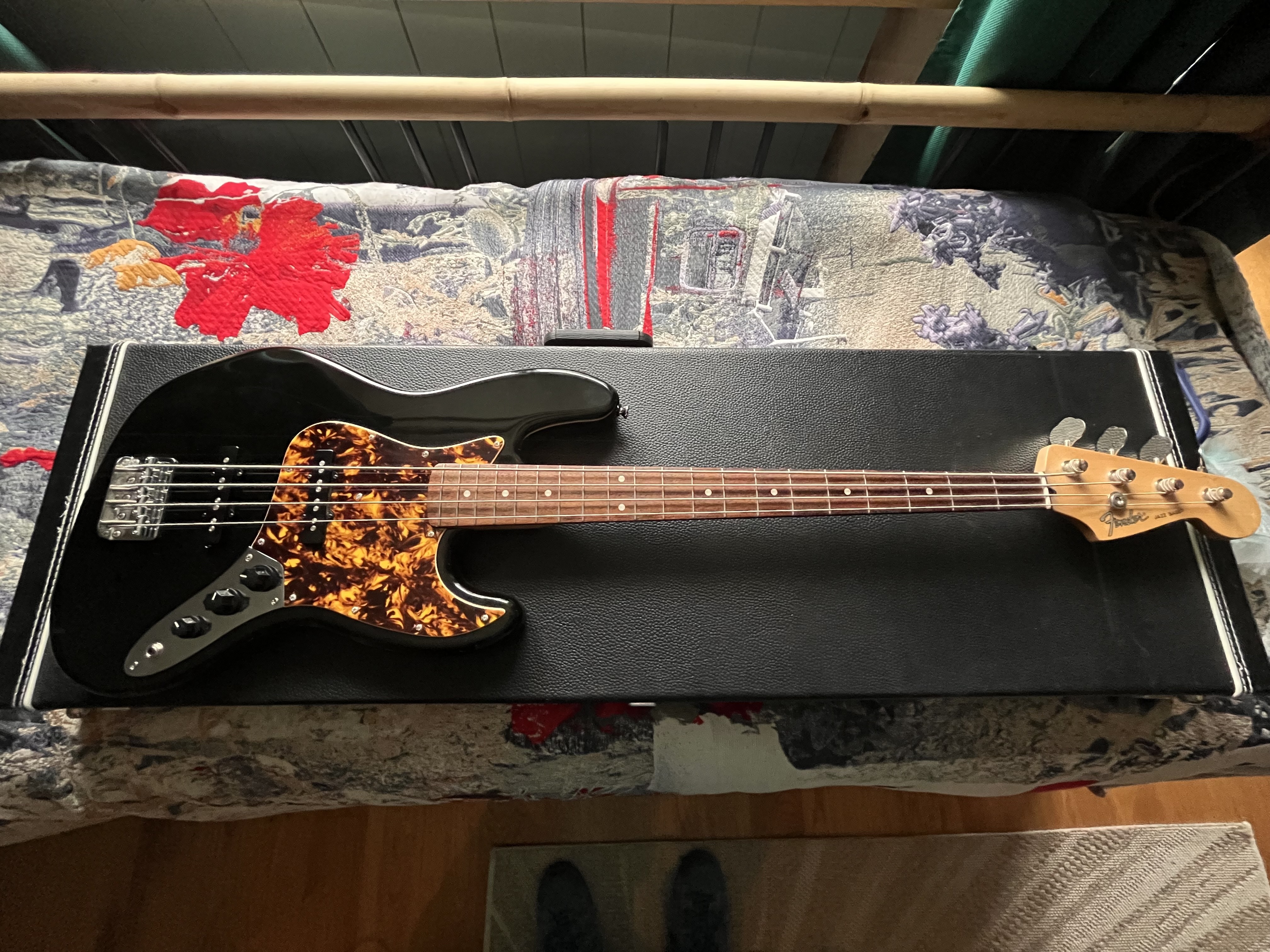 Très belle Jazz Bass japan de 2013 avec manche palissandre satiné importée par les spécialistes Fender Japan : World’s music à Sevran, achetée il y a une dizaine d’année, tres agréable a jouer