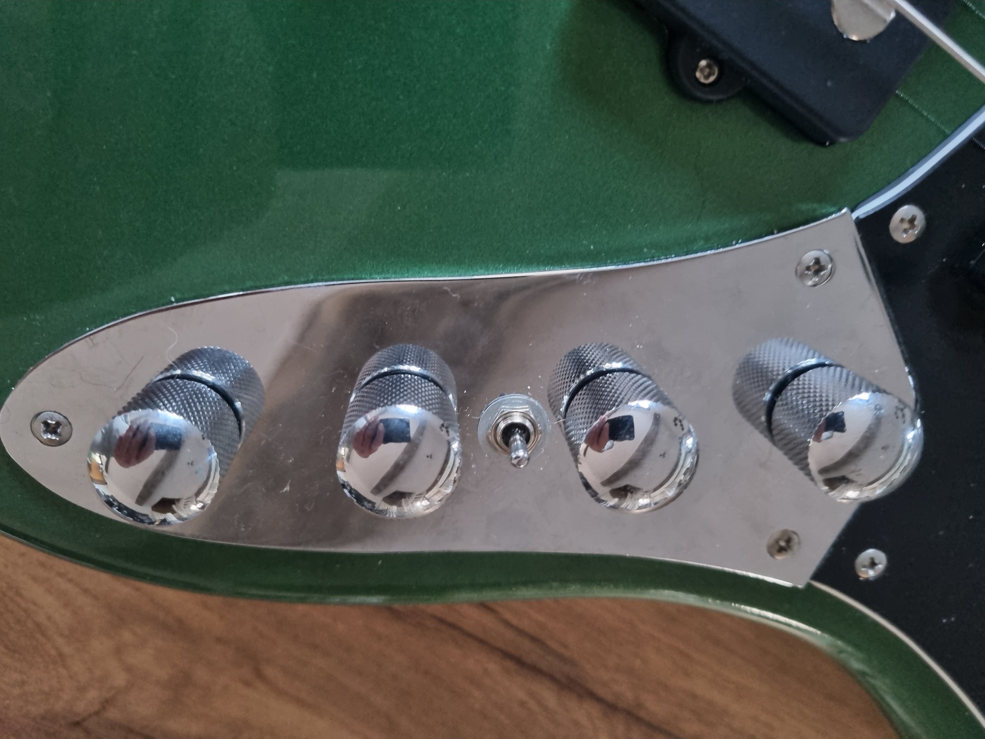 - MODS : J'ai rajouté un mini-swithc 3 positions pour le micro chevalet pour une utilisation en parallèle / simple / série qui rajoute encore un peu plus de polyvalence. J'ai également blindé toutes les cavités, plus une ronflette à l'horizon !