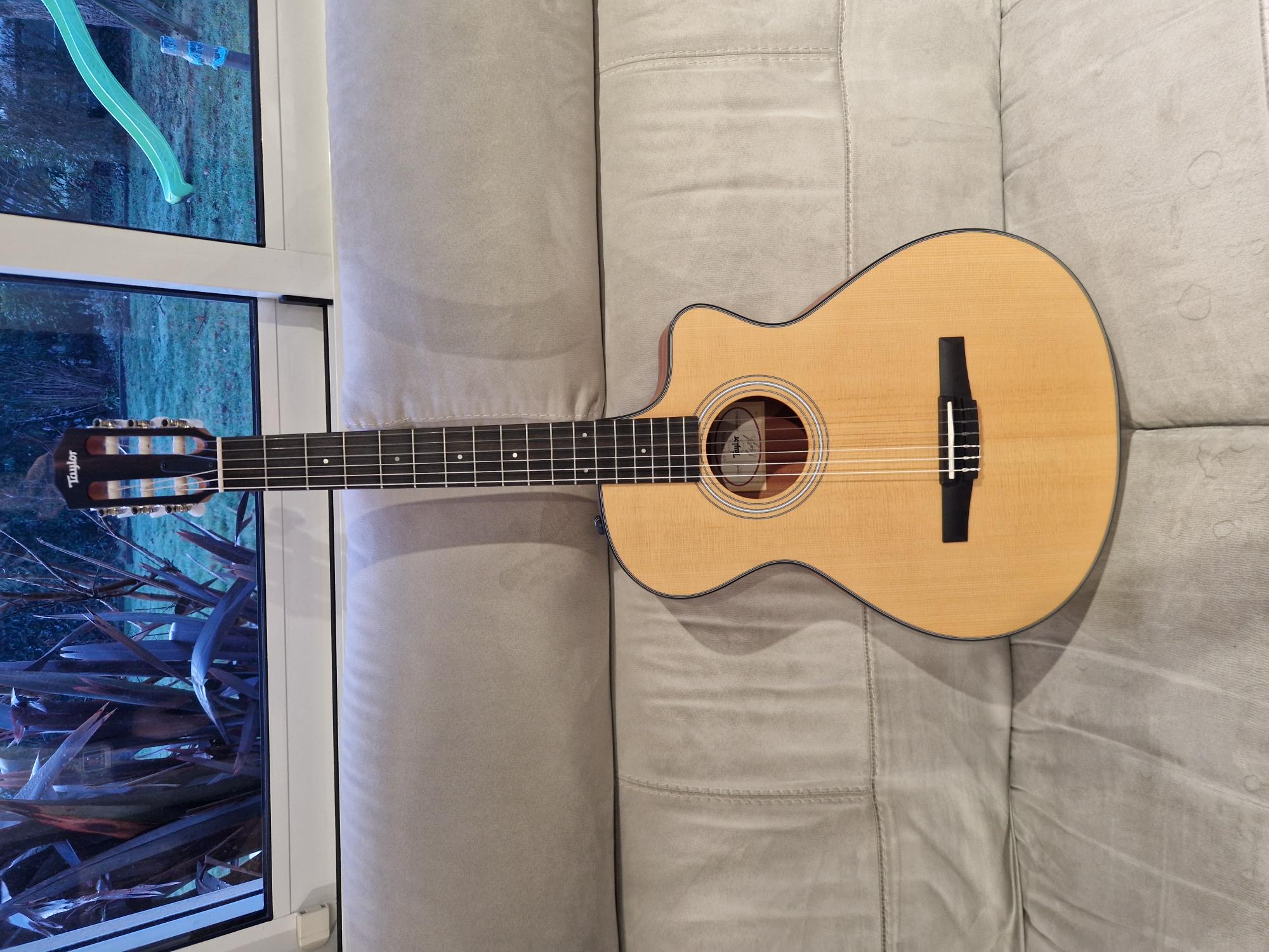 Bonjour,Je vends une Taylor 112ce-N. Etat neuf. Aucune rayure, aucun pet. Modèle électro-acoustique cordes Nylon au format Grand concert donc ultra facile à jouer. La table est massive en épicea torréfié et le dos et les éclisse sont en sapele. Vendue avec la housse Taylor.