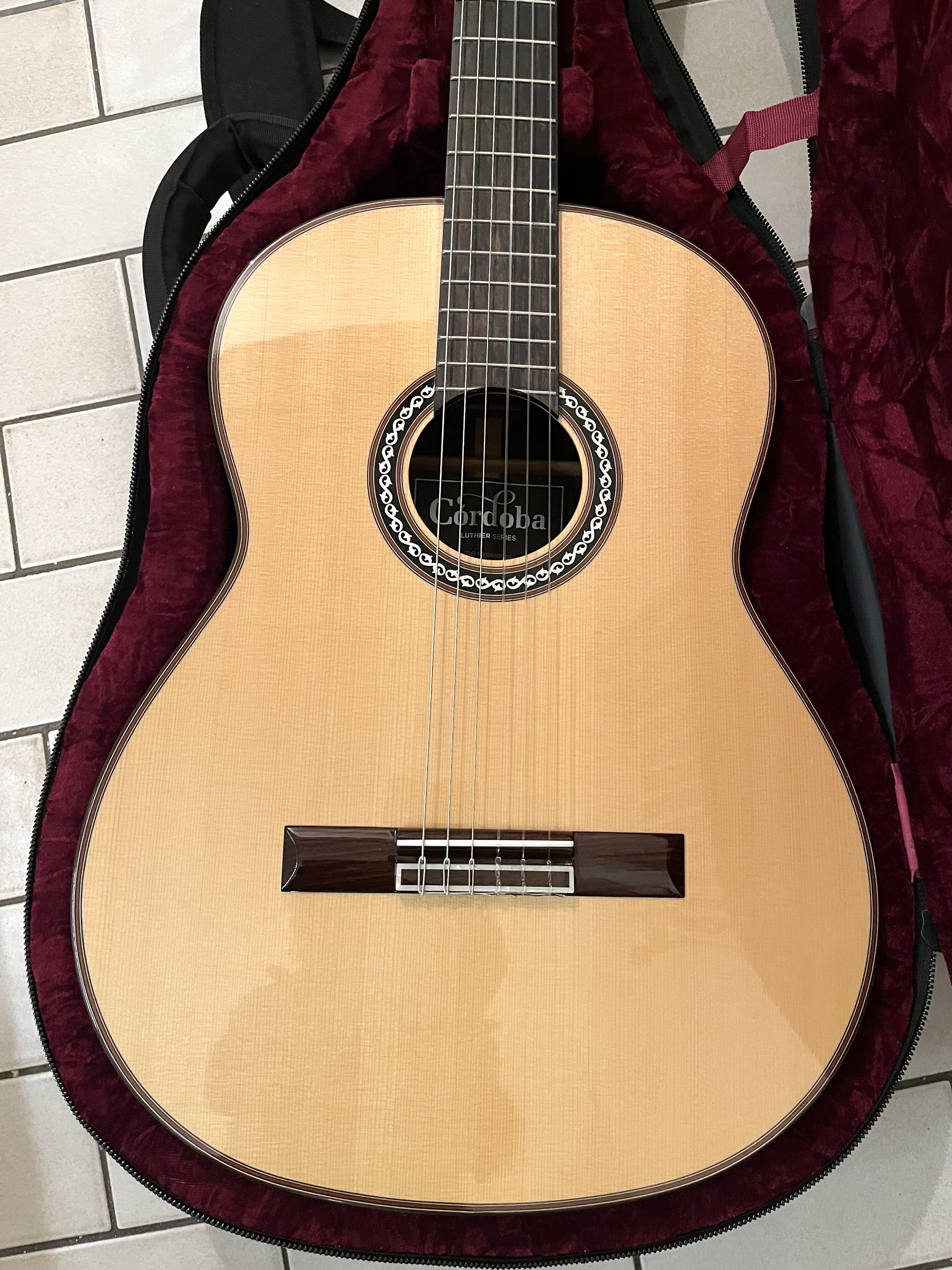 Guitare classique Cordoba C10 Crossover en parfait état, comme neuve.Entièrement en bois massif : table en épicéa, côtés et dos en palissandre indien.
