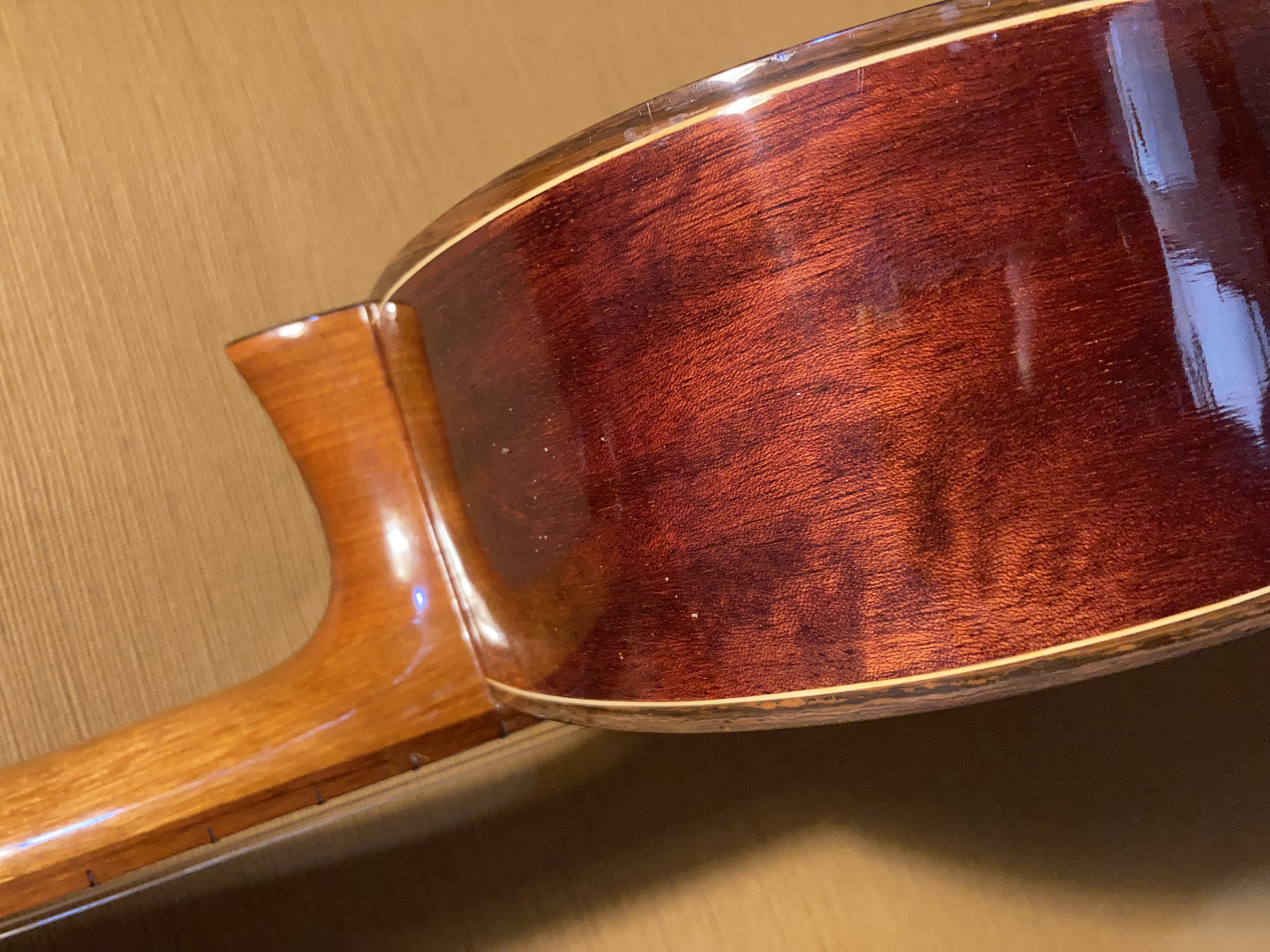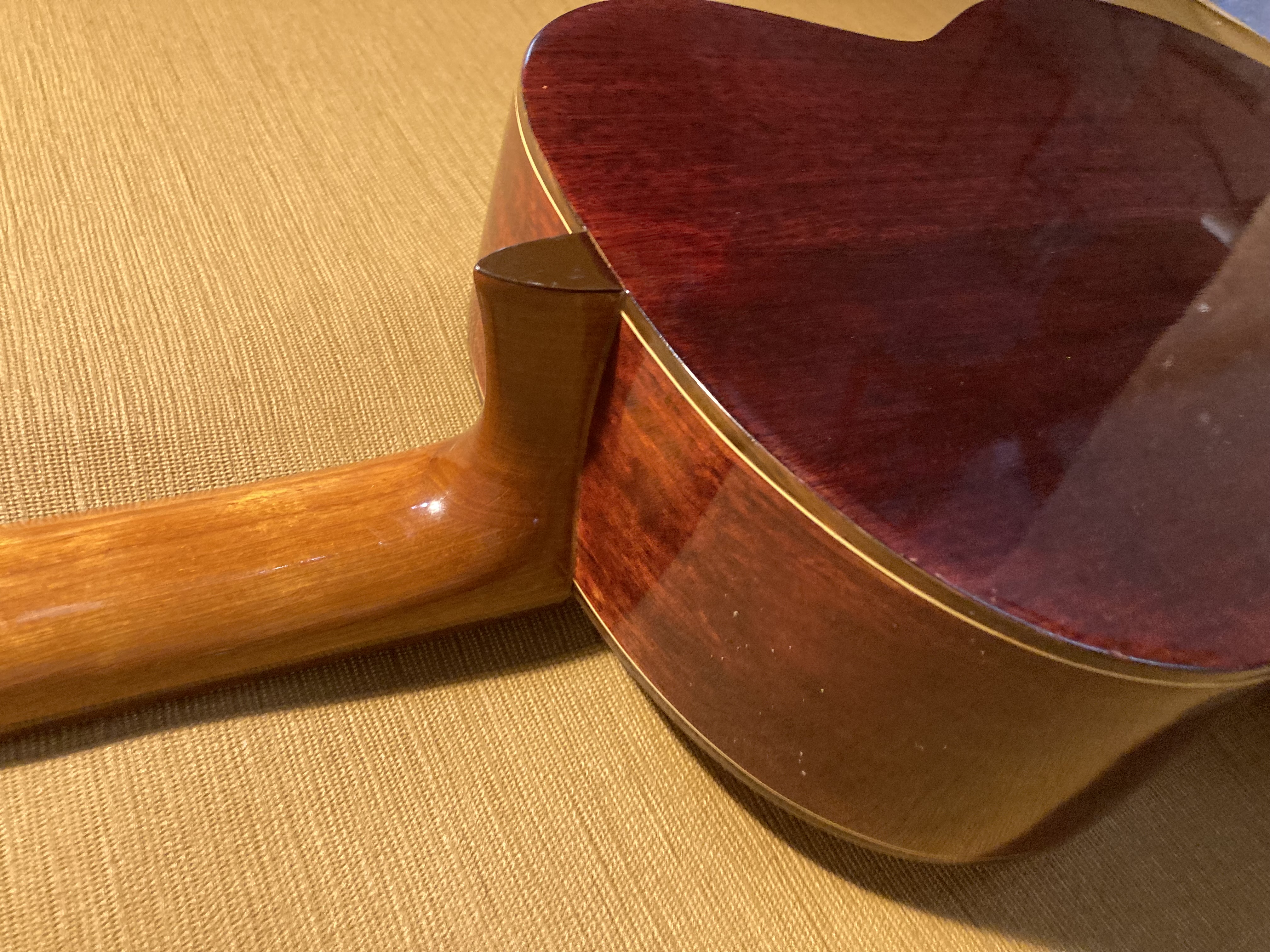 Vintage 70-80 atelier de Nagoya japon, table massive épicéa fond et éclisses acajou belle finition frettes ok manche droit