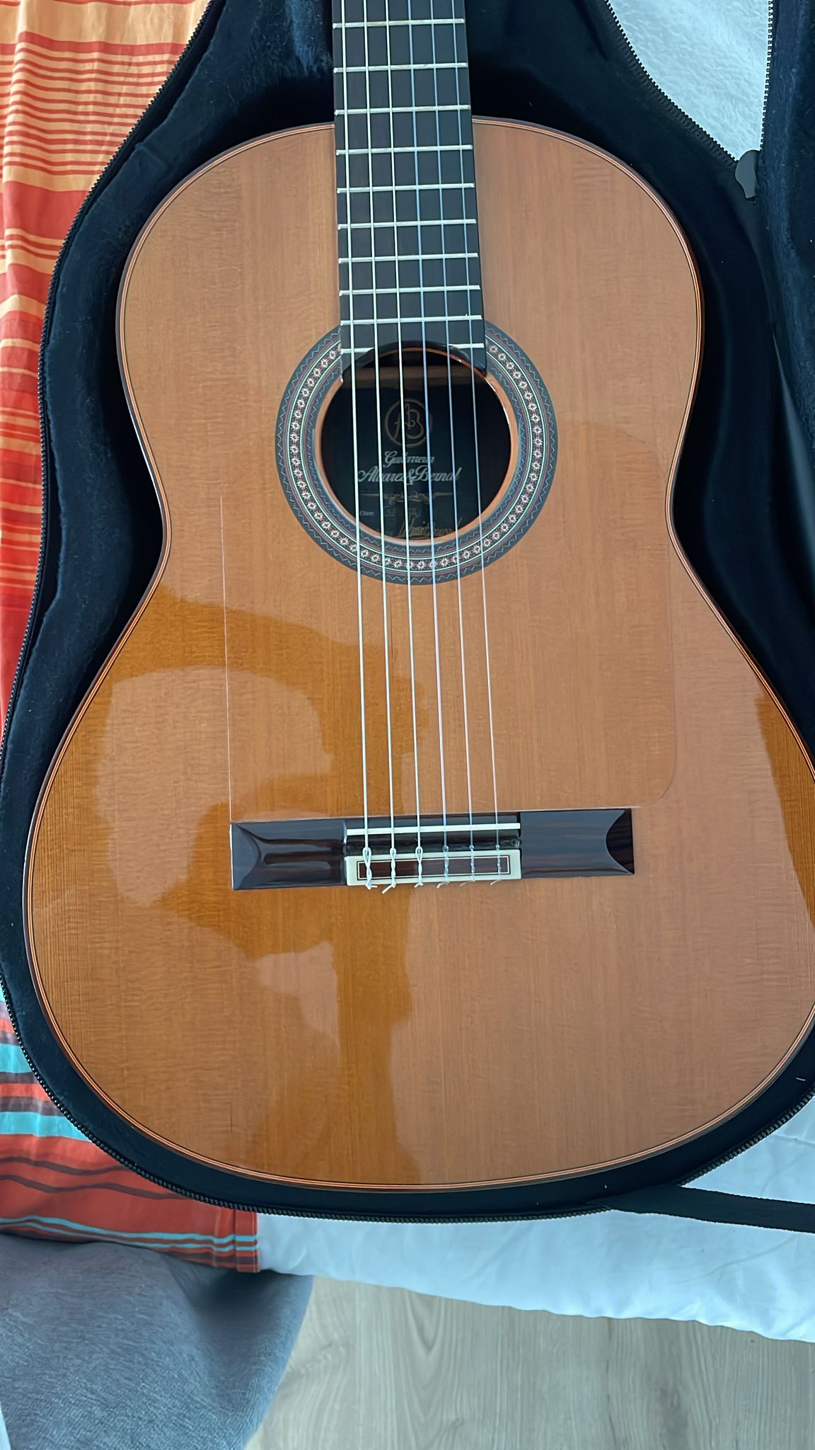Guitare de concert artisanale especial 10 réalisée à la main par le luthier Antonio Bernal à Séville.Modèle correspondant au haut de gamme de sa production.