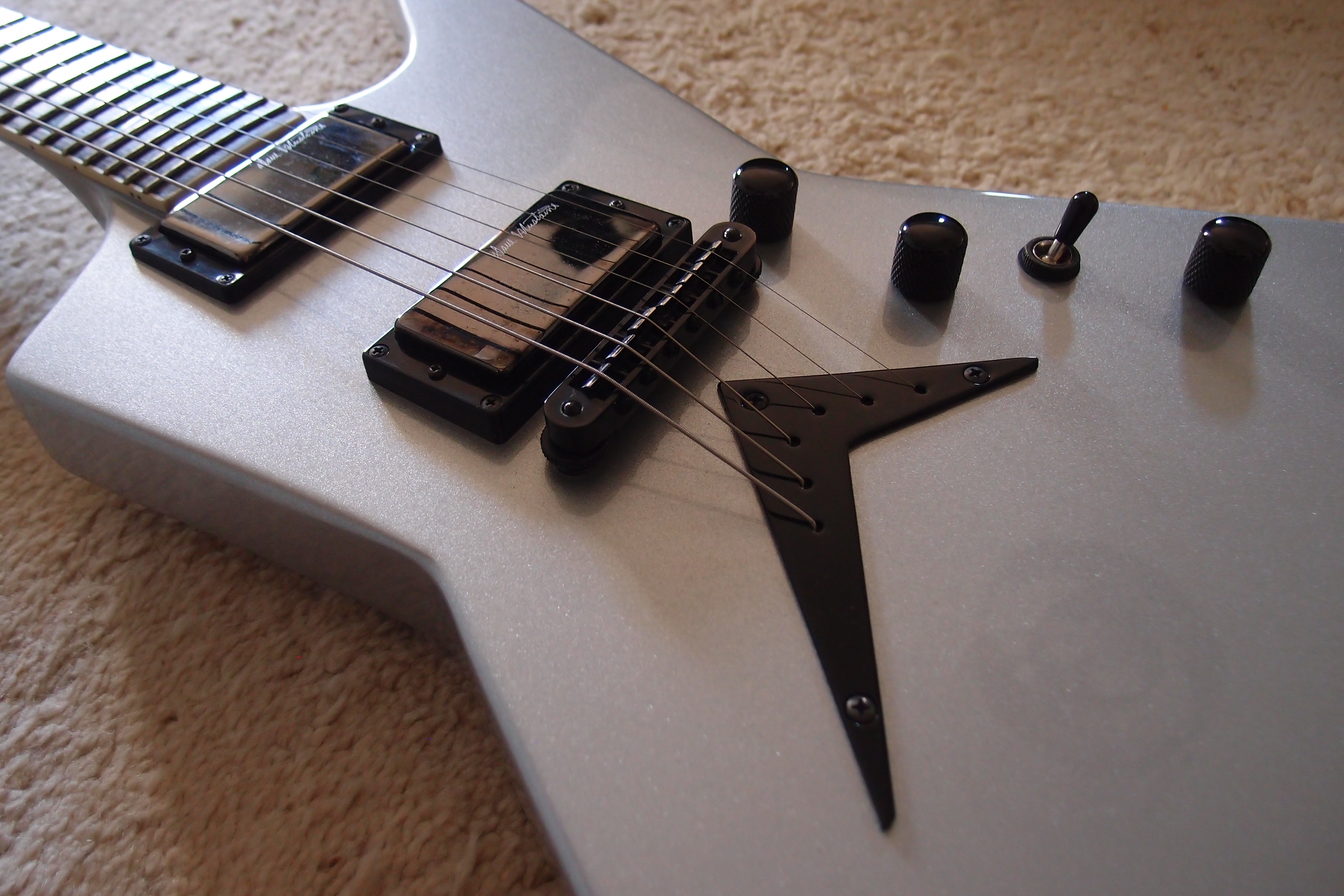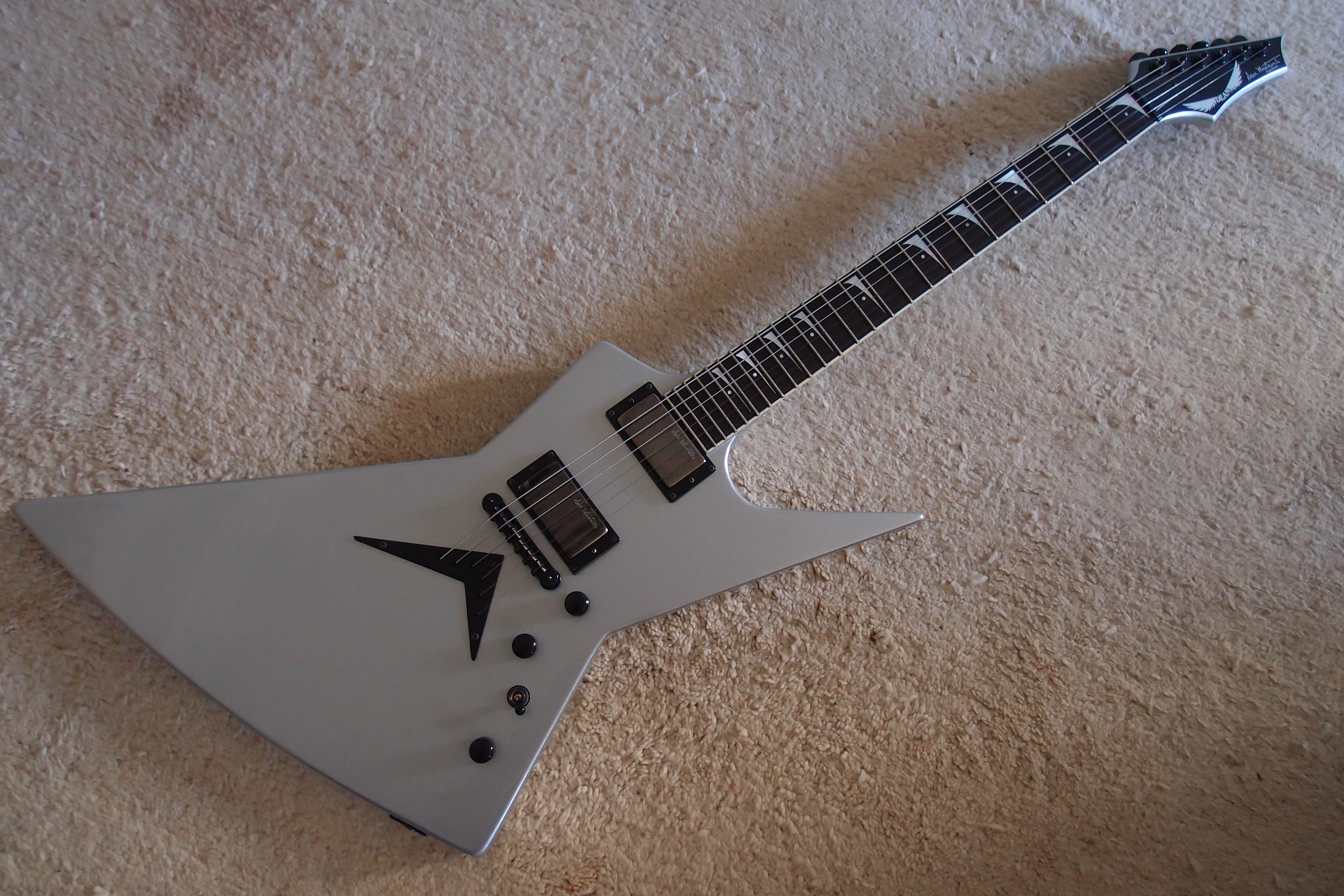 N'arrivant pas à me faire à son diapason, je revends cette Dean Zero signature Dave Mustaine en finition Silver Metallic.Caractéristiques :